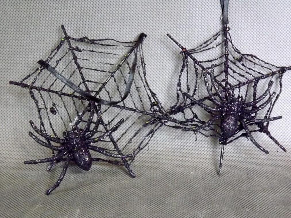 Komplet Czarnych Pajęczyn Z Fioletowym Brokatem I Pająkami-Zawieszkami 2szt. Tuczno
