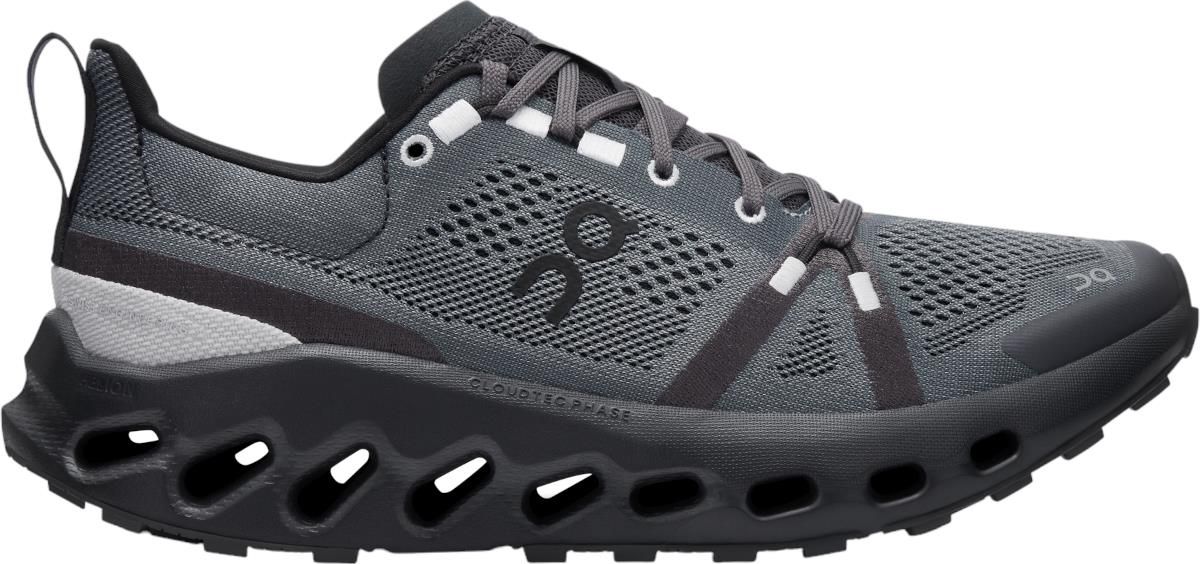 Buty Męskie On Running Cloudsurfer Trail Cloudsurfer Trail to pierwsze buty do biegania w terenie z technologią CloudTec Phase®. Ta zoptymalizowana komputerowo technologia zapewnia płynną jazdę i zwrot energii, którą poczujesz od pięty do palców. Cloudsurfer Trail ma gumową podeszwę zewnętrzną Missiongrip™ zapewniającą wsparcie i stabilność na mokrych i suchych nawierzchniach, z wszechstronnym wzorem wypustek zapewniającym dodatkową przyczepność. Podeszwa środkowa CloudTec Phase® zapewnia płynny krok Amortyzująca pianka Helion™ z miękką wyściełaną piętą Gumowa podeszwa zewnętrzna Missiongrip™ zapewnia przyczepność i stabilność Precyzyjnie zaprojektowane przy użyciu analizy elementów skończonych (FEA) Wydajność na mokrej i suchej nawierzchni Podeszwa zewnętrzna nie pozwala na wbijanie się kamieni