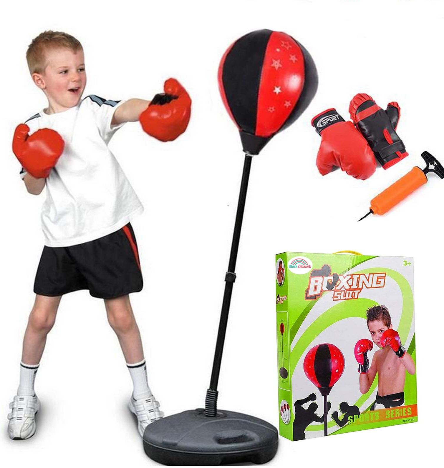 ZESTAW BOKSERSKI DLA DZIECI GRUSZKA NA STOJAKU RĘKAWICE WOREK TRENINGOWY CO WYRÓŻNIA NASZ PRODUKT 1✔️Wszechstronny rozwój poprzez ćwiczenie koordynacji, refleksu, kondycji i koncentracji podczas zabawy. Bezpieczeństwo użytkowania dzięki certyfikatom oraz trwałym i atestowanym materiałom. Kompletny zestaw gotowy do złożenia i natychmiastowego użycia. Atrakcyjna rozrywka w domu pozwalająca na wyładowanie nadmiaru energii. AKTYWNA ZABAWA I ROZWÓJ UMIEJĘTNOŚCI! Ten wysokiej jakości zestaw bokserski dla dzieci zapewnia nie tylko świetną rozrywkę, ale także wspomaga wszechstronny rozwój малючa. Dzięki niemu Twoje dziecko będzie ćwiczyć koordynację ruchową, refleks, kondycję i koncentrację w przyjemny i angażujący sposób. BEZPIECZNA KONSTRUKCJA I SOLIDNE WYKONANIE! Zestaw wykonany jest z trwałych i atestowanych materiałów, posiadających certyfikat CE. Stabilna podstawa gruszki, elastyczna i odporna gruszka oraz miękkie rękawice gwarantują całkowite bezpieczeństwo podczas zabawy. KOMPLETNY I GOTOWY DO UŻYCIA! W zestawie znajdziesz wszystko, co niezbędne do rozpoczęcia przygody z boksem - stabilny stojak, gruszkę, rękawice, pompkę oraz akcesoria montażowe. Wystarczy złożyć go według instrukcji i już można cieszyć się aktywną zabawą! ATRAKCYJNA ZABAWA W DOMU! Dzięki temu zestawowi Twoje dziecko nie będzie się nudzić w domu. Gra w boksera pozwoli mu zażyć rozrywki i wyładować nadmiar energii bez konieczności wychodzenia na zewnątrz. To doskonały sposób na aktywne spędzanie czasu w zaciszu własnego pokoju. SPECYFIKACJA Stan: Nowy Kod producenta: 78282 Wiek dziecka: 3 lata + Marka: Sferazabawek Bohater / Bajka: Inny Materiał: inny Minimalna liczba graczy: 1 Maksymalna liczba graczy: 1 Certyfikaty, opinie, atesty: CE EAN (GTIN): 5904726420164 Kolor dominujący: wielokolorowy Nazwa: ZESTAW BOKSERSKI DLA DZIECI GRUSZKA NA STOJAKU RĘKAWICE WOREK TRENINGOWY Płeć: chłopcy, dziewczynki