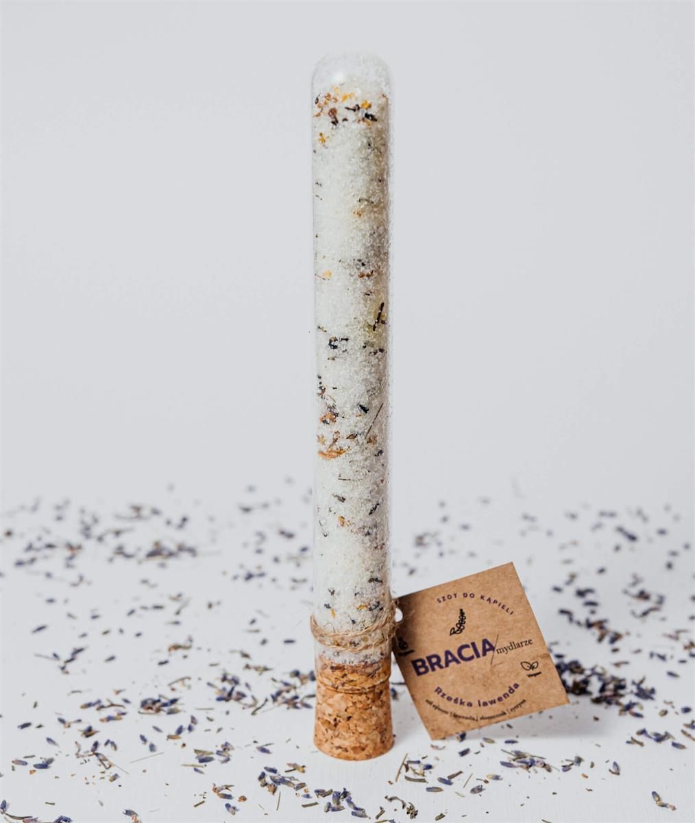 Poczuj moc lawendy! Kąpiel z rana? Albo przed wyjściem na popołudniowy spacer? Randka z ukochanym, ważne spotkanie, wieczorny raut? Słowem, wszystko, co wymaga rześkiego spojrzenia na rzeczywistość, dużo dobrej energii, bystrości umysłu no i naturalnego luzu. Jakie składniki znajdziesz w środku? Sól Epsom - bomba składników, którą uwielbia nasza skóra. Działa niczym antidotum na bóle reumatyczne. pomoże zwalczyć bóle mięśni, posiada właściwości regenerujące, działa przeciwzapalnie i ogranicza wydzielanie sebum, relaksuje, działa kojąco, łagodzi objawy swędzenia. Co za dobra dusza! Olejek eteryczny lawendowy - po prostu jakieś mistrzostwo! Kto nie kocha lawendy, niech pierwszy rzuci tego szota do wanny i zmieni zdanie! Odpręża i relaksuje, stosowany w leczeniu migreny, ma silne działanie antyseptyczne i przeciwbakteryjne, odkażające, tonizujące, odświeżające i łagodzące. Poza tym wyrównuje kolor skóry i jest lawendowy, więc wszyscy go lubią. Olejek eteryczny cytrynowy - wyciskany ze skórek cytryny na zimno, uratuje wasz wieczór i wskrzesi resztki sił, które gromadzą się w zakamarkach odchodzącego dnia. To około plus tysiąc do energii. Ożywi umysł i da kopa do działania. Jakby tego było mało, zdoła zaleczyć lekkie przygnębienie, pomoże się skupić i skoncentrować. Rozjaśnia skórę, działa wygładzająco, odmładzająco i w ogóle jest szansa, że poczujesz się trochę, jak w liceum. (Wróć do domu przed 23:00). Kwiaty słonecznika - jakie to szczęście, że jakiś poczciwy człowiek przytargał ten kwiat, zasadził, rozmnożył i rozgłosił wszystkie jego dobroczynne właściwości po całej Europie! Nawet susz prezentuje się z elegancją i nadaje uroku temu szotowi. Ponoć podczas kąpieli można oddać się rozważaniom o ciągu Fibonacciego i boskiej geometrii. Kwiaty Lawendy - przyprawią Cię o spokój ducha i przyjemne dreszcze. Te piękne małe źdźbła od wieków wrzucane są do wanien, balii i kadzi, bo odmładzają, regenerują, uspokajają nasze rozdarcia wewnętrzne i zewnętrzne, jak i regenerują naskórek. Szoty do kąpieli od BRACI MYDLARZY to unikatowe połączenia drogocennych soli, kwiatów, ziół i odprężających olejków eterycznych lub zapachowych. Idealne na prezent lub do domowego SPA
