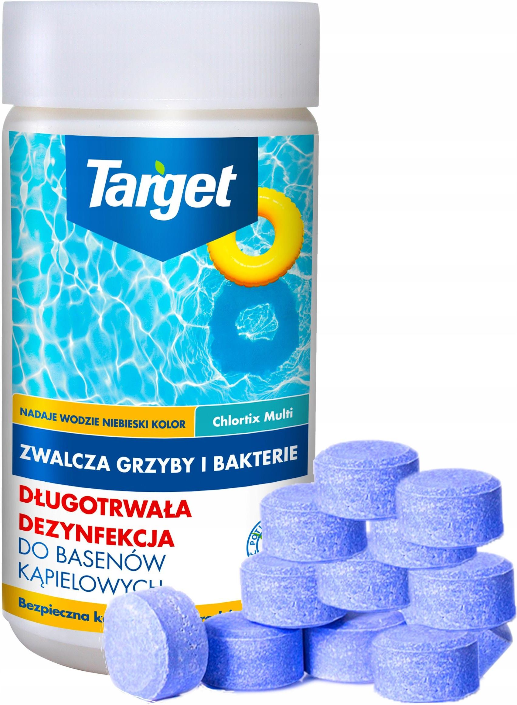 TARGET - CHLORTIX MULTI - NADAJE WODZIE NIEBIESKI KOLOR - ZWALCZA GRZYBY I BAKTERIE - 50 TABLETEK Wolno rozpuszczające się, wielofunkcyjne tabletki chlorowe o działaniu bakteriobójczym przeznaczone do długotrwałej dezynfekcji wody basenowej. Tabletki zawierają 3 składniki służące do dezynfekcji …