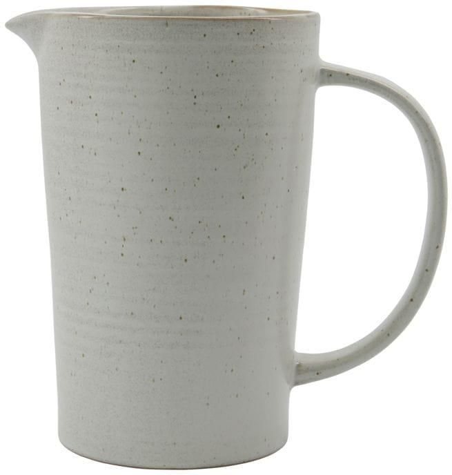 Rustykalny dzbanek z kamionki na co dzień i nie tylko. Biały dzbanek o nazwie Pion uzupełni Twój stół śniadaniowy lub obiadowy w niezobowiązujący sposób. House Doctor nadał mu reaktywną glazurę, która sprawia, że ten przedmiot jest jedyny w swoim rodzaju, a kolor sprawia, że jest niezbędny na co dzień. Użyj dzbanka jako dzbanka na mleko rano i do podania sosu na obiad. Ze względu na matową teksturę glazury, z czasem podczas użytkowania produktu Pion mogą pojawić się zadrapania. To po prostu dodaje uroku i surowego wyglądu temu projektowi. Wymiary: 19x12 / 1,5 L