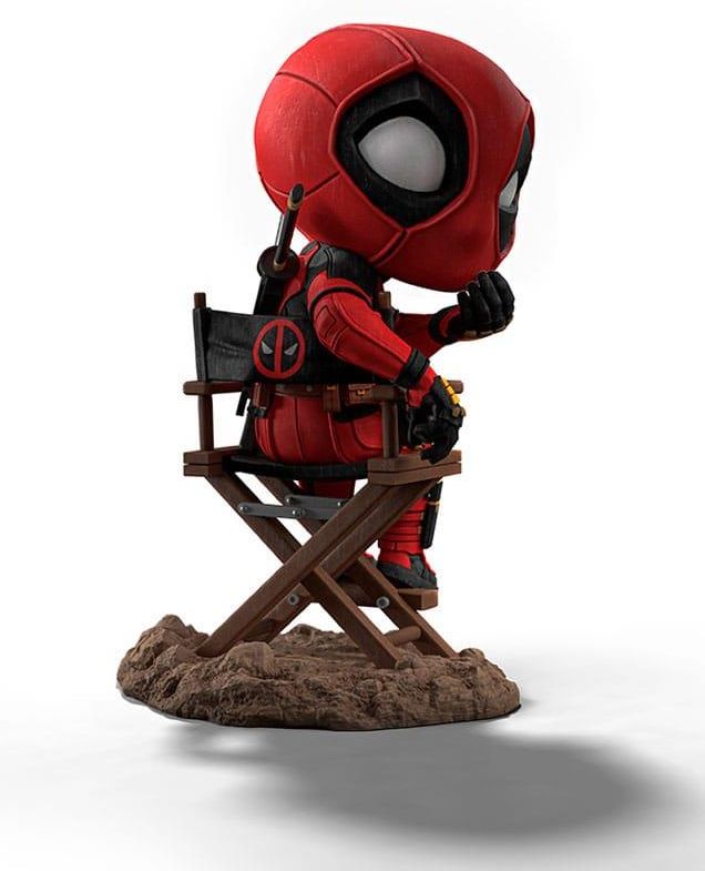 Iron Studios brings a stylized statue of the Chimichangas devourer, inspired by the new movie! Outshining the brightest Light, drawing the Camera to his presence, and determining all the Action! He, the talkative mercenary, the scourge of chimichan gas, the crimson comedian, the regenerating degenerate, Mr. Wilson ob serves curiously while seated comfortably in his folding dir ecto r's chair, apparently surprised-but only appar ently because almost noth ing surprises him. His name is Wilson, Wade Wilson , who once again returns to the big scr een, breaking the fourth wall and gaining another must-have stylized collectible version by Iron Studios in the statue "Dead pool - Dead pool and Wolverine - MiniCo", inspired by the promising third film of the beloved crazy anti-hero, this time in partn ership with the most popular and relentless X-Men, wearing his yellow uniform for the first time in a movie. Wade Wilson had incurable cancer, so he underwent treatment as a guinea pig in the Workshop pr gram, an ultra-secret illegal research organization that exper iments on human s to activate any dor mant X-genes in their DNA and transform them into mutants. As a result, Wade gained a regenerative healing factor that neutralized his cancer but also left him with horrible burn-like scars all over his body. Wade assumed a new identity as the vigilante known as Dead pool, acting as a mercenary and an unpredictable anti-hero. Already available for Pre-order, the Deadpool - Dead pool and Wolverine - MiniCo statue was revealed on the In side Iron Studios Day of June, just like the eagerly awaited film that hits theaters on July 25th. It makes a perfect pair with the "Wolverine - Dead pool and Wolverine - MiniCo" statue, so make sure to get yours now! And see more new releases from Iron Studios recently revealed on their social media and YouTube channel! Size: 13 cm