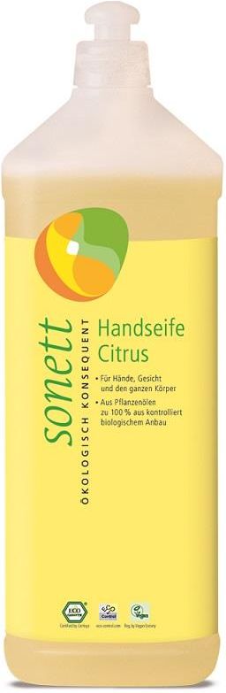 SONETT Ekologiczne mydło w płynie CYTRUS 300 ml, z dozownikiem Dostępne w opakowaniach: 120 ml,300 ml, 1 litr, 10 litrów alkaliczna pielęgnacja dłoni, twarzy i całego ciała wyprodukowane z olejów roślinnych w 100% z upraw ekologicznych ulega biodegradacji w 100% Produkt posiada certyfikaty NCS …