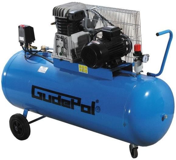 Kompresor tłokowy GUDEPOL GD 49-270-560-B NEW Kompresor tłokowy GD 49-270-560-B NEW Wydajność: 560 l/min Wydajność: 33,6 m3/min Zbiornik: 270 l Moc silnika: 3,0 kW Ciśnienie maksymalne: 10 bar Ilość cylindrów: 2 Stopnie sprężania: 2 Zasilanie: 400 V Obroty: 1450 br/min Wymiary: 150 x 59 x 126 cm Waga: 140 kg Zestaw akcesoriów pneumatycznych składający się z Pistolet do przedmuchiwania Pistolet do pompowania z manometrem Pistolet do malowania z dolnym zbiornikiem 3 końcówki do pompowania Wąż spiralny 3 m Kompresor olejowy Gudepol GD 49-270-560-B NEW to produkt, który powinien znaleźć się w każdym przydomowym garażu czy małym warsztacie. Olejowa konstrukcja i duża wydajność sprawiają, że sprawdzi się nawet przy bardziej wymagających pracach. Wyposażony został w 270 litrowy zbiornik oraz silnik o mocy 3,0 kW generujący ciśnienie max. 10 bar. Kompresor pracuje z wydajnością 560 l / min. Zastosowanie kompresora tłokowego GUDEPOL GD 49-270-560-B NEW: Niski pobór energii i niewielkie wymiary sprawiają, że idealnie nadają się do pracy w przydomowym gospodarstwie lub garażu. Można go wykorzystać przy: zasilaniu narzędzi pneumatycznych, malowaniu niewielkich powierzchni, pompowaniu kół, piłek, pontonów itp. czyszczeniu trudno dostępnych miejsc, przedmuchiwaniu i czyszczeniu urządzeń komputerowych, różnorodnych pracach przy domu i ogrodzie. Cechy sprężarki GD 49-270-560-B NEW Sprężarka tłokowa z napędem pasowym-dwustopniowym. Zbiornik wyposażony w kółka i rączkę dzięki czemu łatwo się ją przemieszcza. Sprężarka posiada reduktor ciśnienia z dwoma szybkozłączami. Sprężarka tłokowa w której silnik jest połączony poprzez przekładnię pasową z agregatem sprężarkowym. Sprężarka wyposażona w elektryczny kabel przyłączeniowy zasilanie 400V/50Hz. Sprężarka posiada zabezpieczenie termiczne chroniące silnik przed przeciążeniem. Dwa tłoki umieszczone obok siebie w jednym cylindrze, układ rzędowy. Żeliwny cylinder gwarantuje długą żywotność i wydajne chłodzenie. Uszczelnienie tłoków w cylindrach za pomocą trzech pierścieni, zapewnia niskie zaolejenie sprężonego powietrza. Łatwa kontrola poziomu oleju poprzez wziernik. Dwustopniowe sprężanie powietrza przy jednoczesnym zastosowaniu chłodnicy powietrza w procesie sprężania międzystopniowego, dzięki czemu uzyskujemy wyższą sprawność. Sprężarka wyposażona w manometr kontrolny ciśnienia w zbiorniku. Praca sprężarki kontrolowana jest przez wyłącznik ciśnieniowy zapewniający jej pracę w automacie. Samoczynne uruchomienie przy minimalnym ciśnieniu i wyłączenie po osiągnięciu maksymalnego ciśnienia. Dodatkowo sprężarka wyposażona w zaworek odciążający zabezpieczający silnik przed przeciążeniem i ułatwiający ponowny rozruch sprężarki. Zbiornik sprężonego powietrza zabezpieczony zaworem bezpieczeństwa i wyposażony w zaworek ułatwiający odwodnienie zbiornika. Zastosowanie dużych średnic łożysk w systemie ułożyskowania wału korbowego gwarantuje ich długą żywotność. Dane techniczne Wydajność ssawna [l/min]: 560 Wydajność ssawna [m3/h]: 33,6 Pojemność zbiornika [litry]: 270 Ciśnienie max [bar]: 10 Moc silnika [kW]: 3,0 Ilość cylindrów [n0]: 2 Stopnie sprężania [n0]: 2 Napięc. zasil. [V]: 400 Hałas [dB]: 80 Obroty [obr/min]: 1450 szer. x gł. x wys. [cm]: 150x59x126 Waga [kg]: 140