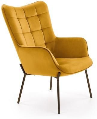 Halmar Castel Fotel Wypoczynkowy Czarne Nogi Musztardowy Welur 7209 Tułowice