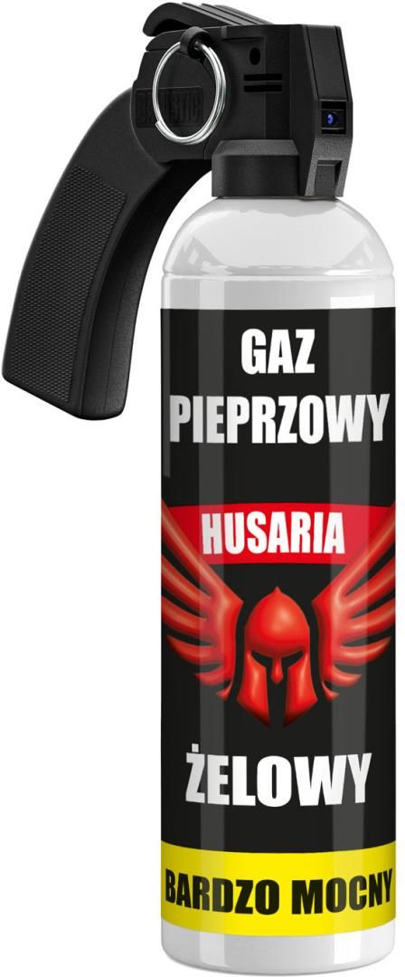 Gaz pieprzowy “gaśnica” z najbardziej pożądaną przez klientów formą rozpylenia, czyli strumień żelowy. Gaz wyposażony jest w zawleczkę, chroniącą przed przypadkowym użyciem. Autorska formuła „Husaria” pozwala uzyskać większą skuteczność przy podobnych parametrach technicznych. Rączka wykonana jest z wytrzymałego polimeru (tej samej używa Policja w USA) Dane techniczne: Pojemność puszki: 650 ml Ilość wsadu: 400 ml Zasięg do: 6 metrów Zawartość OC – 10% Zawartość MC – 1,4% Barwnik zielony Forma rozpylenia: strumień żelowy