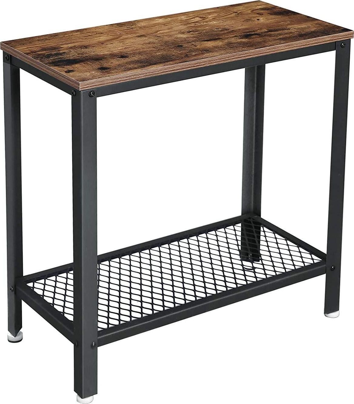 Konsola wykonana w stylu rustykalnym, czyli odpowiednio stylizowanym na wiekowy. Odpowiednie wymiary konsoli zapewniają wystarczająco dużo miejsca na nasze rzeczy. Stolik wprowadzi ład i porządek do Twojego salonu, przedpokoju i korytarza. Ława może służyć do przechowywania kwiatów w doniczkach, książek, czasopism, ozdobnych figurek, kluczy oraz innych drobiazgów. Na górnym blacie możemy też umieścić nasze pięknie oprawione zdjęcia. Na co dzień w salonie spędzamy czas pijąc ulubioną filiżankę kawy, pijemy ją jednak sami bądź w towarzystwie partnera, nie potrzebujemy zatem dużej ławy, która zabiera sporo miejsca, wówczas z powodzeniem można wykorzystać konsolę jako stolik kawowy. Metalowa półka w konsoli chętnie przechowa Twoje obuwie, jeżeli tylko zechcesz je tam umieścić. Uniwersalność oraz praktyczność sprawią, że ten produkt będzie jednym z Twoich ulubionych mebli w domu. Meble w stylu loft to ostatni krzyk mody. Stolik na pewno wpasuje się w wystrój niejednego pomieszczenia. Metalowa konstrukcja zapewnia stabilność mebla. Idealnie spasowane elementy ramy oraz rustykalna oprawa blatu nadadzą Twojemu wnętrzu wdzięku. Zadbaj o estetykę swojego przedpokoju, salonu czy pokoju wybierając produkty sprawdzone, o najwyższej jakości wykonania. SPECYFIKACJA: Kolor: rustykalny brąz, czarny Materiał: płyta wiórowa, metal Wymiary: 60 x 30 x 60 cm (szerokość x głębokość x wysokość) Waga: 6 kg Max. obciążenie górnego blatu: 20 kg Max. obciążenie metalowej półki: 10 kg Regulowane nóżki pomogą w odpowiednim wypoziomowaniu mebla nawet na nierównej podłodze. Dane logistyczne 1 x SKU 2041 waga 6 kg brutto - wymiary 69 x 32 x 8 cm.
