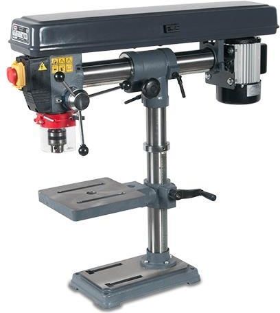 Wiertarko-sękarka Proma 25403127 z silnikiem elektrycznym o mocy 550W. Przeznaczona jest do wiercenia, wgłębiania i wycinania otworów w różnych materiałach. Praktyczny stół roboczy może być obracany o 360° za pomocą sworznia obrotowego. Możliwość wiercenia pod wieloma różnymi kątami, dzięki pochylanej górnej części urządzenia. Urządzenie cechuje się mocną i wytrzymałą konstrukcją. Charakterystyka produktu: Wiertarko-sękarka jest przeznaczona do wiercenia, wgłębiania i wycinania otworów w różnych materiałach - szczególnie w drewnie Wrzeciono z łożyskami kulkowymi jest osadzone stożkiem Mk II, pozwala zamocować głowicę wiercącą lub inne narzędzia Duży stół roboczy może być obracany o 360° za pomocą sworznia obrotowego Możliwość pochylania górnej części urządzenia, dzięki czemu można wiercić pod różnym kątem Stabilna i wytrzymała konstrukcja urządzenia Dane techniczne: Moc przyłączeniowa: 550W Napięcie: 230V Posuw wrzeciona: 80mm Rozmiar stołu: 230 x 210mm Wymiary podstawy: 345 x 215mm Zakres obrotów: 500, 790, 1 130, 1 870, 2 450 obr./min. Średnica kolumny: 60mm „T“ rowki stołu: 15mm Całkowita wysokość: 790mm Głowica-uchwyt: 3 - 16mm Ilość stopni regulacji obrotów: 5 stopni Maksymalna odległość wrzeciona od kolumny: 320mm Maksymalna odległość wrzeciona od podstawy: 470mm Maksymalna odległość wrzeciona od stołu: 350mm Masa netto / brutto: 37 / 40kg