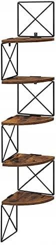 Półka Narożna Regał z półkami narożny ścienny 128 cm brąz LOFT REGAŁ NAROŻNY NA KSIĄŻKI, KWIATY, AKCESORIA, 5 PÓŁEK, RUSTYKALNY BRĄZ, W STYLU LOFT Regał wykonany w stylu rustykalnym, czyli odpowiednio stylizowanym na wiekowy. Półki regału są stabilne, a więc możemy umieścić na nich książki, kwiaty w wazonach, ozdobne figurki oraz ramki ze zdjęciami. Regał cechuje się uniwersalnością oraz funkcjonalnością, będzie świetnie pasował do salonu, sypialni, przedpokoju, gabinetu, a 5 półek ułatwi nam dostęp do ulubionych rzeczy. Ten produkt pozwoli nam w pełni wykorzystać przestrzeń narożną. Półka w stylu loft to ostatni krzyk mody. Na pewno wpasuje się w wystrój niejednego pomieszczenia. Idealnie spasowane elementy oraz rustykalna oprawa półek nadadzą Twojemu wnętrzu wdzięku. Zadbaj o estetykę swojego salonu, sypialni, korytarza czy też biura wybierając produkty sprawdzone, o najwyższej jakości wykonania. SPECYFIKACJA Kolor: rustykalny brąz, czarny Materiał: płyta wiórowa, stal Wymiary: 20 x 20 x 127,5 cm (szerokość x głębokość x wysokość) Odległość między półkami: 20,4 cm Waga: 2,9 kg Max. obciążenie na półkę: 6 kg Produkt do samodzielnego montażu