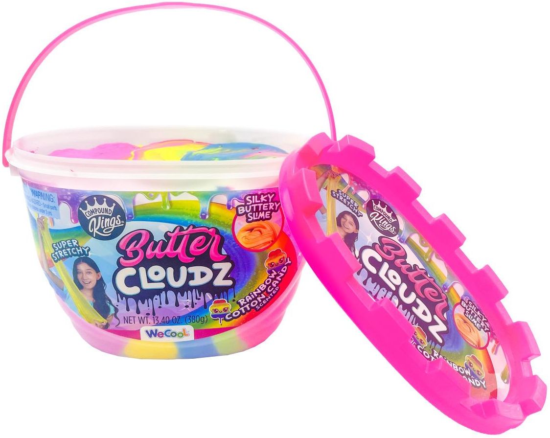 Rainbow Butter Cloudz 380g. Is super elastic and silky smooth slime that feels like butter. Stretch it! String it! Shape it! 4+ years
