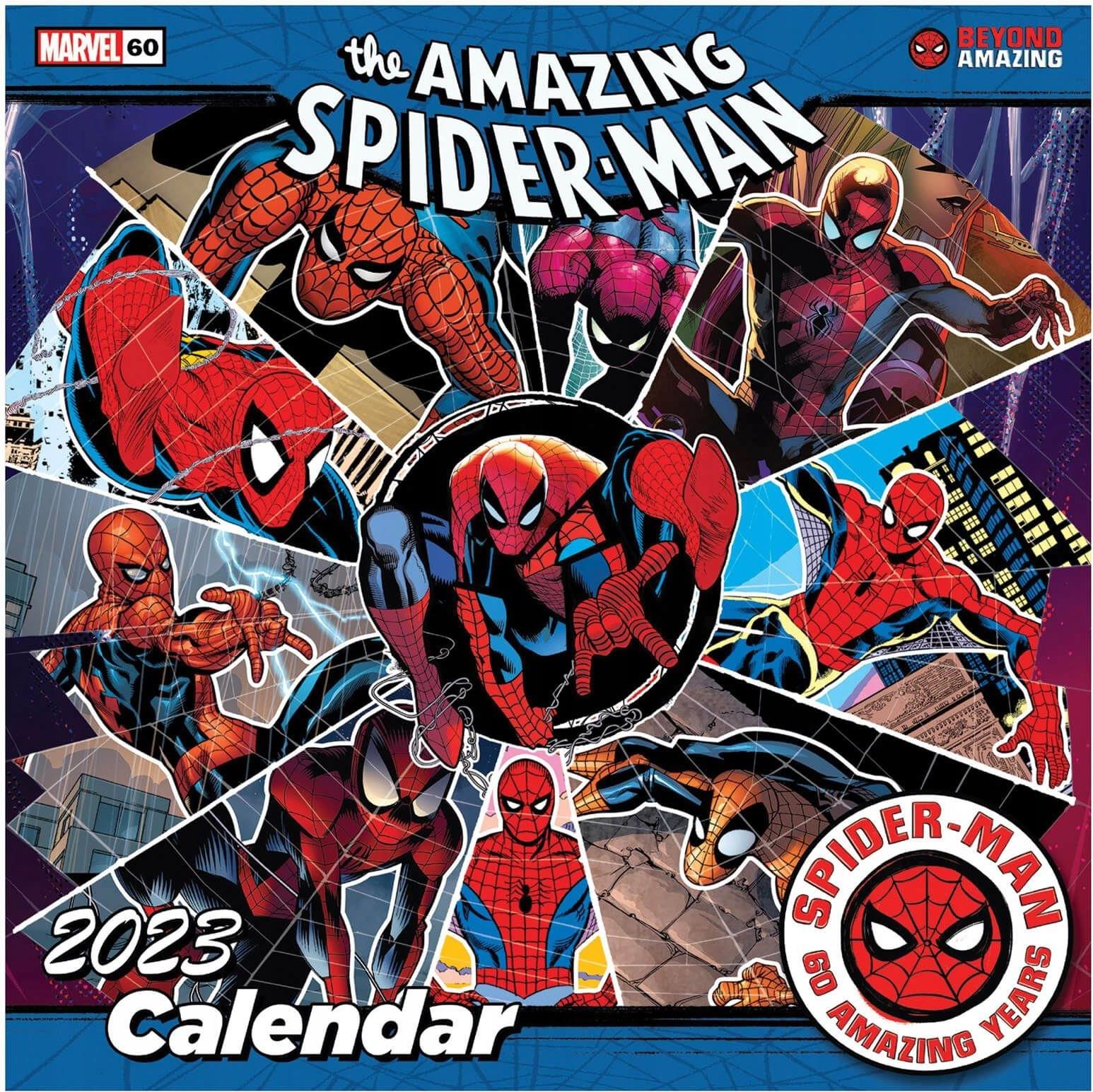 Spider-Man - kalendarz 2023 Oficjalne wydanie na 2022 rok. Nie zwlekaj i nie czekaj na nowy rok, przygotuj się na niego już dziś! Numer katalogowy: C23017 Marka: Marvel Typ: kalendarz ścienny Wymiary: złożony 30x30 cm, rozłożony 30x60 cm Ilość stron: 12 stron z kalendarium i unikalnymi zdjęciami …