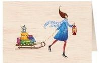 Karnet drewniany C6 + koperta Święta Kobieta z sankami Turek