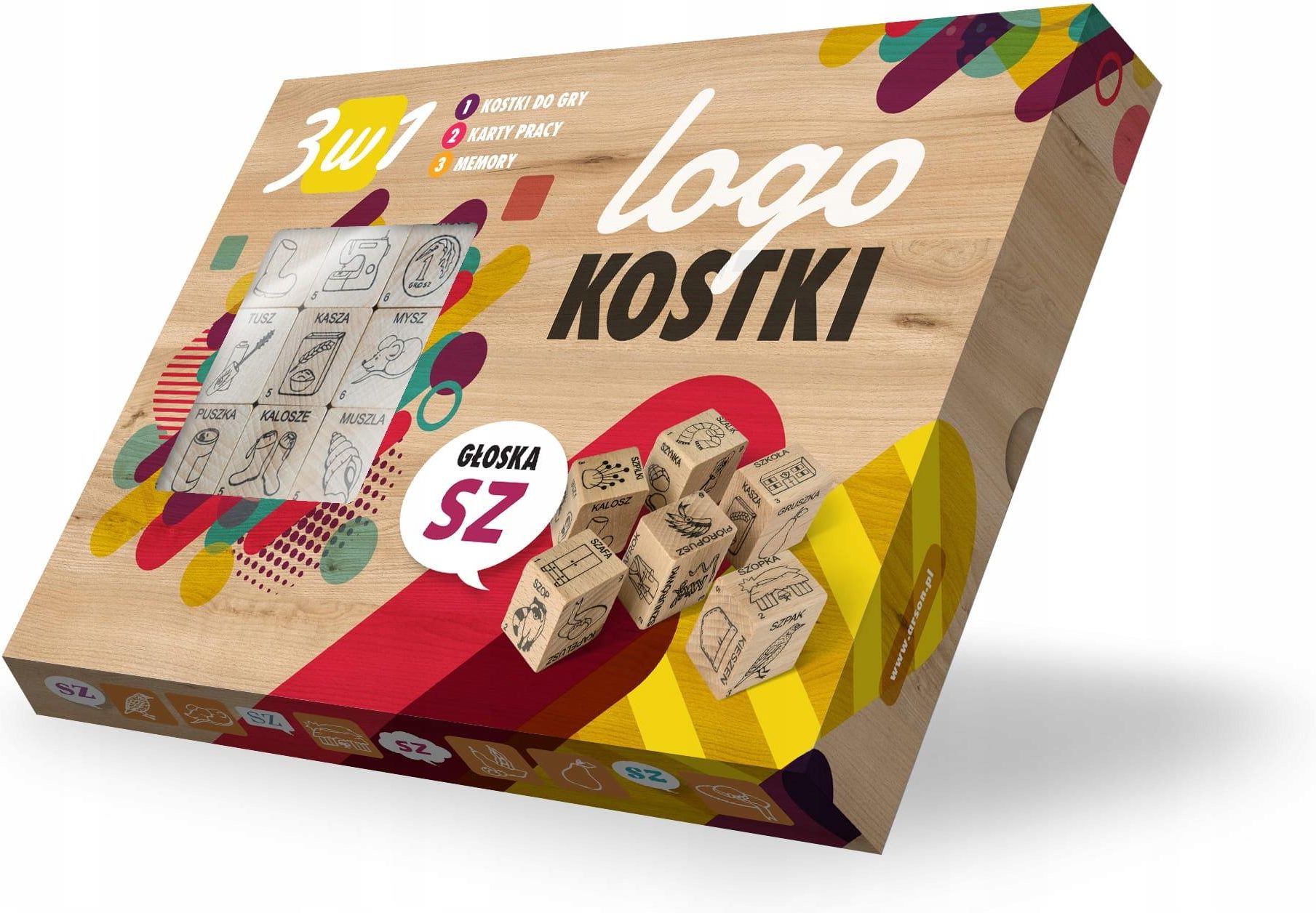 Gra zawiera: - LOGOKOSTKI - 9 kostek z drewna bukowego 3x3 cm (54 obrazki) - KARTY PRACY Z ĆWICZENIAMI - 12 kart - MEMORY - 108 kart + woreczek bawełniany (wersja podróżna) Seria LOGOKOSTKI to kompleksowa pomoc, która: - wspomaga rozwój mowy dz...(...)