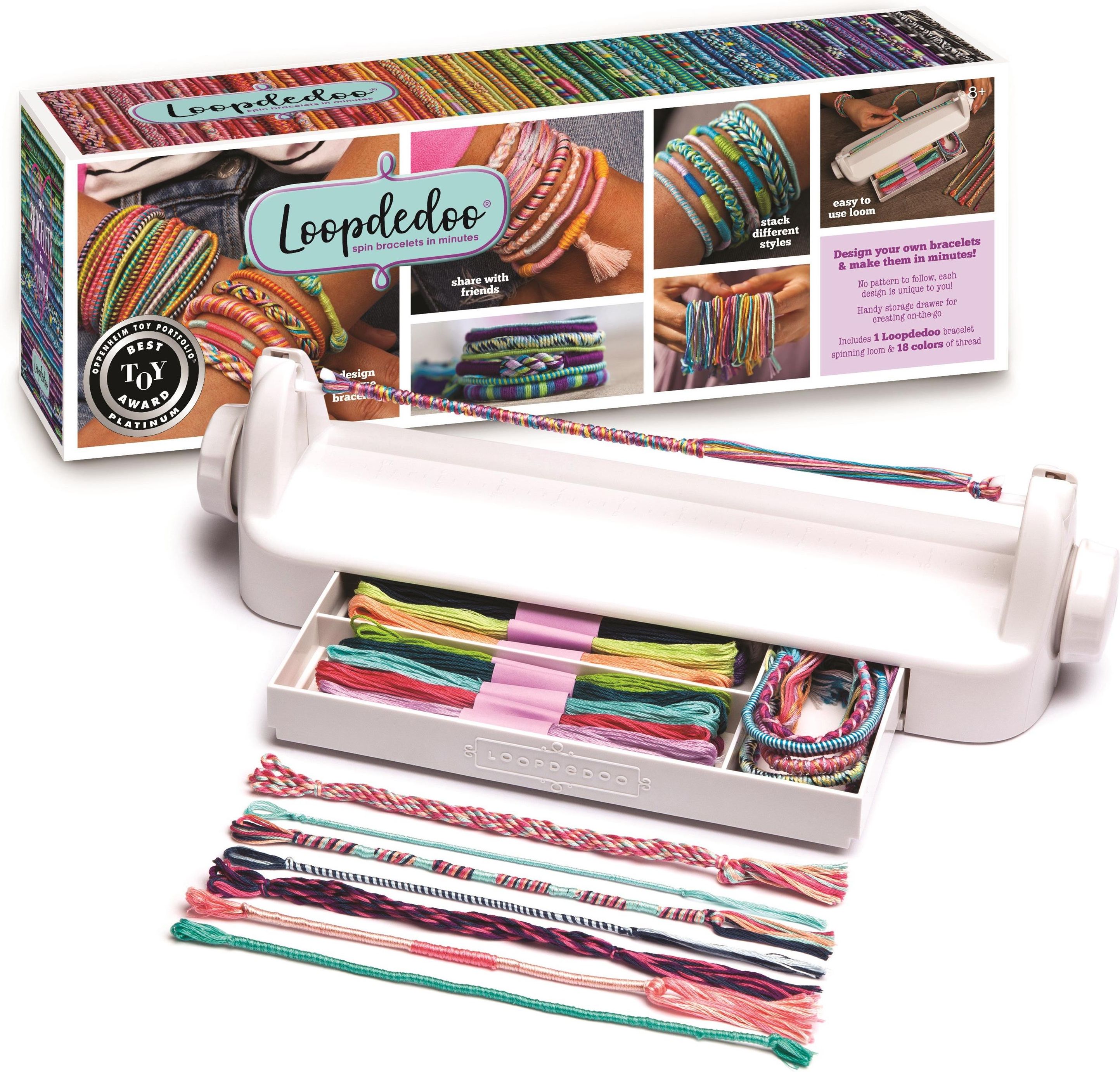 Projektowanie super cienkich bransoletek we wszystkich kolorach i wzorach nigdy nie było tak łatwe Dzieci mogą projektować bransoletki przyjaźni, naszyjniki, opaski na głowę, bransoletki na kostki i paski w ciągu kilku minut dzięki opatentowanemu kreatorowi bransoletek Loopdedoo. Każde dzieło jest wyjątkowe! Zmień grubość, styl pętli, liczbę nici i kombinacje kolorów, aby stworzyć całkowicie unikalne akcesoria. Wiek 6+. ZESTAW BRANSOLETKI DLA PRZYJACIELA Loopdedoo nadaje nowoczesnego charakteru bransoletkom z przyjaciółmi dzięki opatentowanej maszynie do tworzenia bransoletek. ŁATWY W UŻYCIU Loopdedoo sprawia, że tworzenie bransoletek dla przyjaciół jest zabawne i łatwe w ciągu kilku minut! UNIKALNE KREACJE Każda bransoletka jest wyjątkowa! Zmień grubość, styl pętli, liczbę nici i kombinacje kolorów, aby stworzyć unikalne bransoletki i akcesoria. IDEALNY PREZENT DLA DZIECI, MŁODZIEŻY I NASTOLATKÓW Zachęca do kreatywności i wyrażania siebie. KOMPLETNY ZESTAW ARTYSTYCZNY I RZEMIEŚLNICZY Zawiera 1 krosno Loopdedoo (z tajnym schowkiem) i 12 wiązek wysokiej jakości bawełnianych nici. Maszyna odniosła ogromny sukces w latach 2014-2017 - teraz pojawiły się nowe pokolenia - i wszyscy uwielbiają delikatne bransoletki.