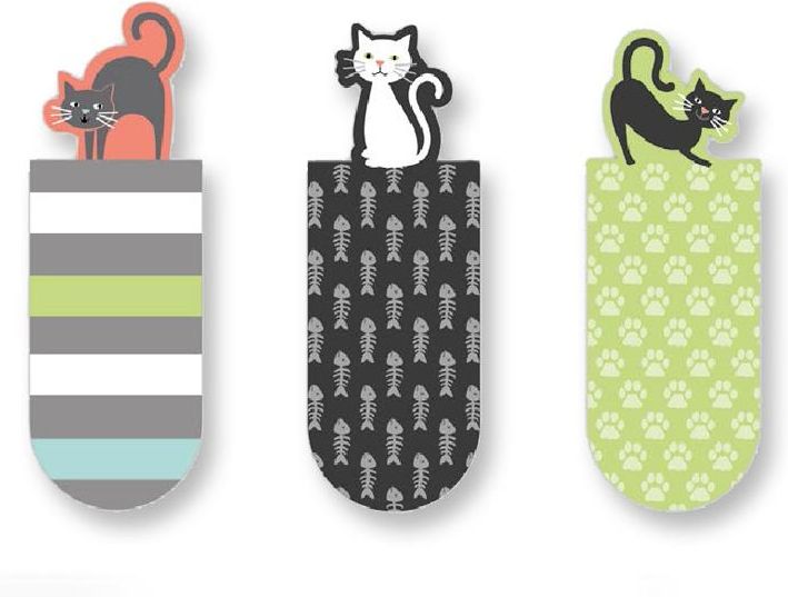 magnetyczne - Koty grzeczne Pięknie ilustrowane zakładki z wystającymi, ozdobnymi elementami. Idealne do zaznaczania ostatnio czytanych lub ulubionych fragmentów książek. Doskonale sprawdzają się w indeksowaniu notatek, dokumentów w biurze, w szkole i w domu. Każdy zestaw zawiera 3 zakładki o …