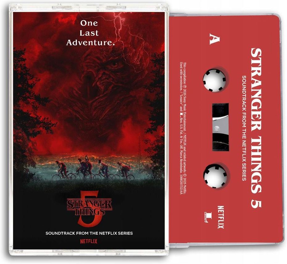 Soundtrack - Stranger Things 5 (From The Netflix Series) (MC) Świętuj epickie zakończenie serialu „Stranger Things” od Netflixa dzięki oficjalnej ścieżce dźwiękowej do 5. sezonu - nostalgicznej podróży prosto do 1987 roku. Album zawiera kultowe utwory towarzyszące finałowej walce o Hawkins. Edycja na czerwonej kasecie magnetofonowej, stanowi wyjątkową gratkę kolekcjonerską dla fanów. Lista utworów: Michael Jackson - Rockin' Robin Tiffany - I Think We're Alone Now ABBA - Fernando The Chordettes - Mr. Sandman The Psychedelic Furs - Pretty In Pink David Bowie - Heroes Iron Maiden - The Trooper Pixies - Here Comes Your Man The Chords - Sh-Boom Yello - Oh Yeah Butthole Surfers - Human Cannonball Floyd Cramer - Heart and Soul Cowboy Junkies - Sweet Jane Freddy Martin And His Orchestra - To Each His Own Nazwa zespołu: Soundtrack Nazwa albumu: Stranger Things 5 (From The Netflix Series) Pochodzenie zespołu: Stany Zjednoczone Kraj wydania: Europa Rok albumu: 2026 Rok wydania: 2026 Format nośnika: MC Numer katalogowy: 19802973214 Gatunek: Soundtrack