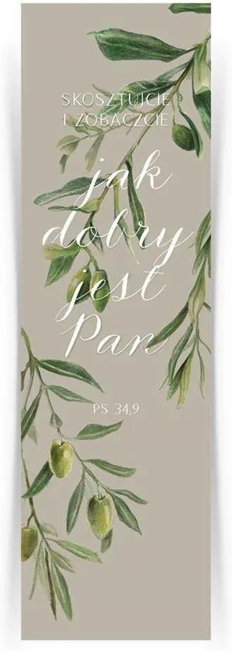 Zakładka o rozmiarze 18 cm x 5 cm. Zakładka zawiera tekst biblijny.