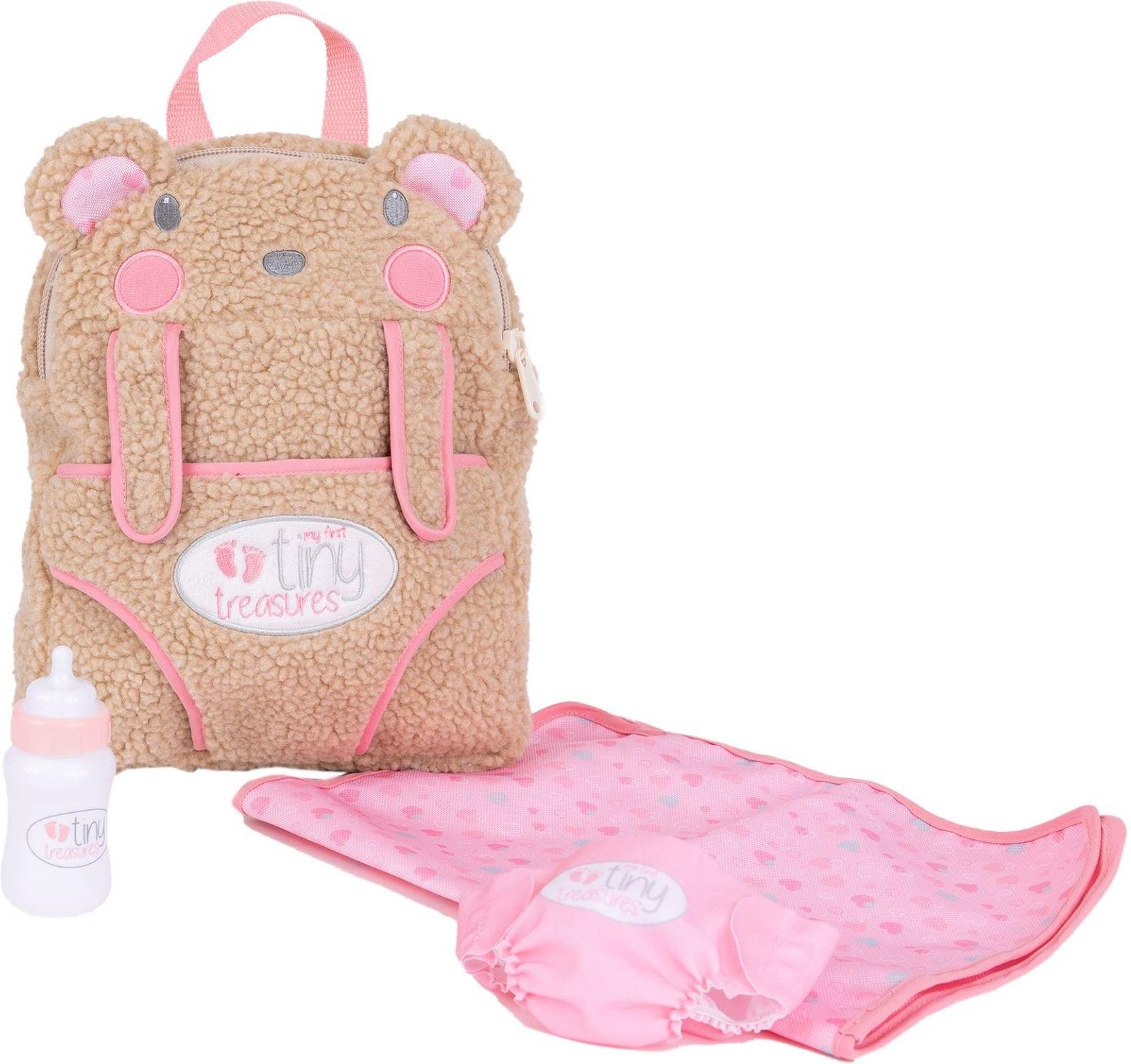 Plecak Tiny Treasures z nosidełkiem i akcesoriami do przewijania dla lalki. Pasuje do lalek 45 cm w wieku 3+ lat