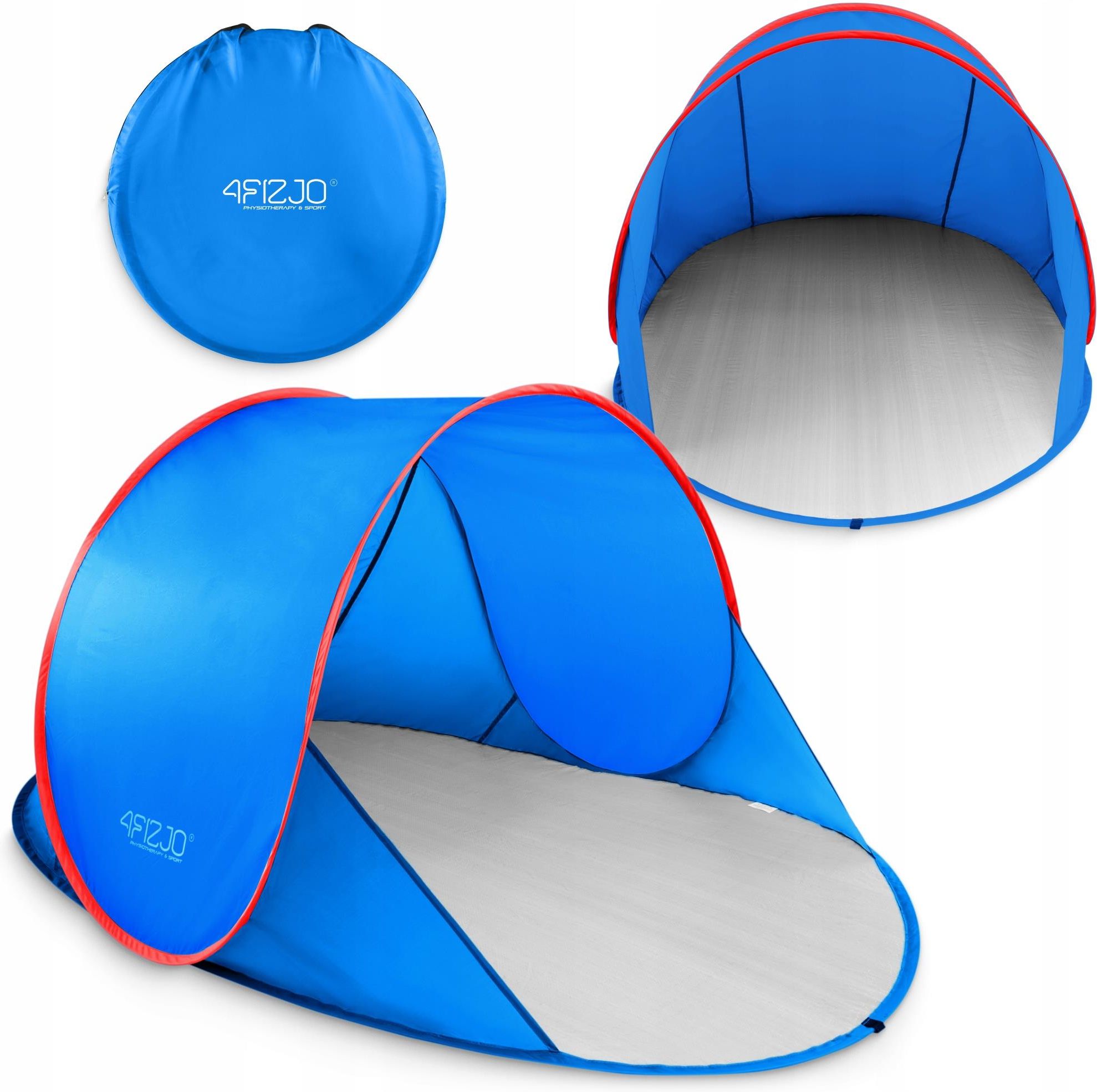 NAMIOT PLAŻOWY SAMOROZKŁADAJĄCY POP-UP PARAWAN NA PLAŻĘ OGRÓD OCHRONA UV Namiot plażowy POP-UP 4FIZJO samorozkładający niebiesko-czerwony Nie chcesz nosić ze sobą na plażę ciężkiego parawanu i parasola? Chcesz mieć trochę prywatności oraz dodatkowe miejsce, gdzie przechowasz swoje rzeczy, nie martwiąc się o zasypanie ich piaskiem? W takim razie postaw na przenośny namiot plażowy samorozkładający 4FIZJO! Beztrosko i przyjemnie spędzony czas masz na wyciągnięcie ręki. Taki namiot jest dla tych osób, które chcą cieszyć się wodą i piękną pogodą bez marnowania czasu na jego rozkładanie. Zaletą namiotu na plażę 4FIZJO jest również to, że da upragniony cień. Tym samym zadbasz o komfort zarówno swój, jak i bawiących się dzieci. Rozkładany namiot plażowy 4FIZJO Plażowy namiot samorozkładający 4FIZJO to udogodnienie, bez którego już nigdy więcej nie wyobrazisz sobie wakacyjnego odpoczynku. Zapoznaj się z cechami produktu, aby dobrać go do swoich potrzeb. Parametry Typ: plażowy Sposób rozkładania: POP-UP, samorozkładający Kolor: niebieski, czerwony Materiał: 100% poliester Stelaż: włókno szklane Wymiary po rozłożeniu: 195 × 120 × 85 cm Wymiary przed rozłożeniem: 62,5 × 2,5 cm Waga: ok. 1 kg Filtr UV: tak, 30+ W zestawie: torba do przechowywania, 4 śledzie, pokrowiec na śledzie Zalety namiotu plażowego samorozkładającego Namiot plażowy 4FIZJO typu POP-UP wyróżnia się samorozkładającą się konstrukcją. Wystarczy wyjąć go z pokrowca i wbić śledzie. Produkt jest lekki, poręczny i kompaktowych rozmiarów, co zapewnia jego wygodny transport i przechowywanie. Do tego zajmuje niewiele miejsca. Namiot na plażę został wyprodukowany z wytrzymałego poliestru. Materiał nie chłonie wilgoci i szybko schnie. Konstrukcję elastycznego stelaża wykonano z włókna szklanego. Materiał jest pokryty specjalną powłoką, która chroni przed szkodliwym promieniowaniem słonecznym na poziomie UV 30+. Rozkładany namiot plażowy to skuteczna ochrona przed słońcem, wiatrem i piaskiem. Do zestawu dołączone są śledzie, które umożliwiają stabilne mocowanie do podłoża. Namiot na plażę – różnorodne zastosowanie i komfortowy wypoczynek Namiot plażowy POP-UP od 4FIZJO został zaprojektowany z myślą o osobach, które pragną urozmaicić swój odpoczynek urlopowy. Jednak ma on też dodatkowe zastosowanie. Może posłużyć również jako: namiot balkonowy namiot na działkę, do rozstawienia w ogrodzie parawan zapewniający na kempingu dodatkową prywatność namiot wędkarski mini domek do zabaw dla dzieci
