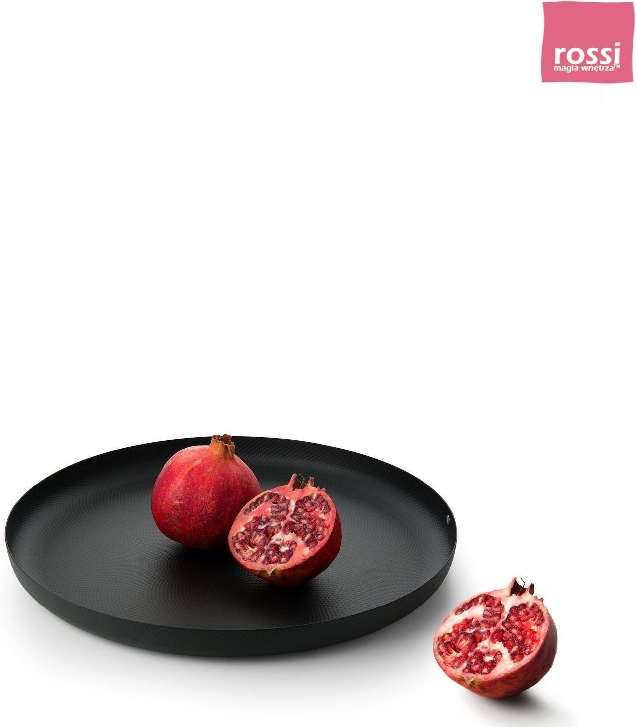 Taca z kolekcji Texture włoskiej marki Alessi. Taca została wykonana ze stali nierdzewnej pokrytej żywicą epoksydową zdobioną efektownym, geometrycznym reliefem i logiem marki Alessi. Produkt komponuje się doskonale z innymi elementami kolekcji Texture. Materiał: stal, żywica Kolor: czarny Średnica: 35 cm Wysokość: 3 cm Projekt: Jasper Morrison