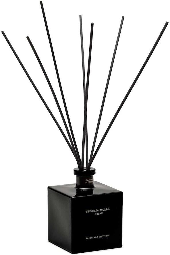 Dyfuzor Premium Reed 500 ml o kompozycji zapachowej Santal & Tonka. Zapach uwalniany przez rattanowe patyczki. Szklany pojemnik i kartonowe opakowanie nadające się do recyklingu.