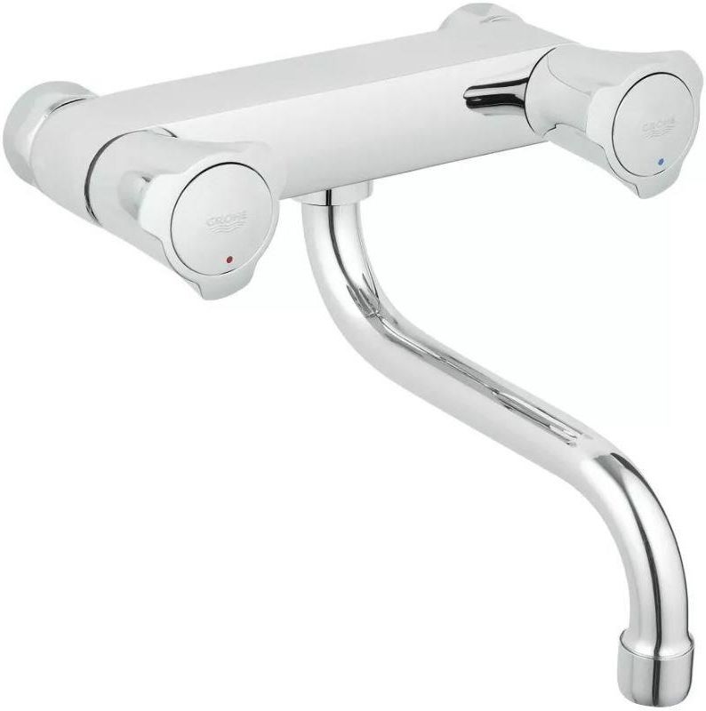 GROHE Costa Bateria umywalkowa ścienna Chrom 31182001 Kolor: Chrom Obszar obrotu 360 ° Rozmiar przyłącza: 4,3 Rostaw: 150 Montaż: ścienny Izolowana termicznie GROHE LongLife uchwyt w kształcie gwiazdy Obrotowa wylewka Metalowe uchwyty Skok 200 mm Wymiary: wysięg wylewki: 200 mm odległość wylewki od ściany: 234 mm wysokość wylewki: 139 mm