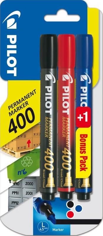 Marker Permanentny Pilot Sca-400 Ścięty 3Sztuki Czarny, Czerwony, Niebieski PILOT __________________________________________________________________ Opis szczegółowy Marker permanentny z szybkoschnącym tuszem, pisze po każdej powierzchni, końcówka nie wysycha bez skuwki do 24 godzin, CSP INK - …