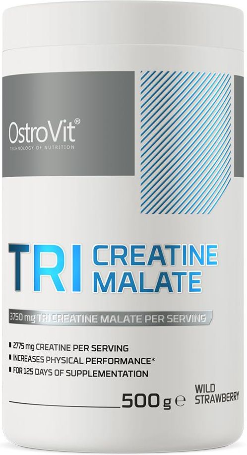OstroVit Jabłczan Kreatyny 500 g Smak: poziomkowy Suplement diety OstroVit Jabłczan Kreatyny to wysokiej jakości suplement diety, który zawiera kreatynę w postaci jabłczanu. To preparat o pysznym, owocowym smaku, dostępny w wygodnej w użyciu formie proszku, który nie zawiera dodatku cukru. To produkt stworzony z myślą o sportowcach i osobach aktywnych fizycznie, którym zależy na uzupełnieniu diety w cenne związki. Źródło kreatyny - jedna porcja suplementu diety dostarcza do organizmu 2775 mg kreatyny. Pyszne warianty smakowe - zarówno smak cytrynowy, pomarańczowy, poziomkowy, jak i mango zapewnia wyjątkowe doznania smakowe. Bez dodatku cukru - suplement zawiera niskoenergetyczną substancję słodzącą, co przyczynia się do obniżenia kaloryczności produktu. 1 porcja = 1 miarka = 4 g. Wydajność - opakowanie produktu zawiera 125 porcji preparatu. Wygodna forma - preparat dostępny w postaci proszku zapewnia bezproblemową podaż suplementu diety i świetnie sprawdzi się wśród osób, które mają trudności z połykaniem tabletek. Masa netto produktu: 500 g Ilość porcji w opakowaniu: 125 Wielkość porcji: 4 g Składniki aktywnew 1 porcji Jabłczan tri-kreatyny:3750 mg - w tym kreatyna2775 mg Składniki: Jabłczan tri-kreatyny, aromat, substancja słodząca: sukraloza. Produkt może zawierać mleko (łącznie z laktozą), soję, orzeszki ziemne, inne orzechy, nasiona sezamu, zboża zawierające gluten, jaja, skorupiaki, ryby. Suplement diety w proszku. Zawiera substancje słodzące. Jak spożywać Jabłczan Kreatyny? Porcję 4 g (1 miarka) wymieszać w 100-150 ml wody lub soku. W dni tre­nin­gowe spożywać jedną por­cję dziennie - po prze­bu­dze­niu lub po treningu. W dni nietreningowe spożywać jedną porcję dziennie po przebudzeniu. Nie przekraczać zalecanej dziennej porcji do spożycia. Suplement diety nie może być stosowany jako substytut (zamiennik) zróżnicowanej diety. Zalecany jest zrównoważony sposób żywienia i zdrowy tryb życia. Nie spożywać w przypadku uczulenia na którykolwiek ze składników produktu. Produkt nie powinien być stosowany przez dzieci, kobiety w ciąży i matki karmiące. Przechowywać w sposób niedostępny dla małych dzieci. Przechowywać w temperaturze 15-25°C w zakmniętym opakowaniu, w suchym miejscu. Chronić przed bezpośrednim działaniem promieni słonecznych. OstroVit Jabłczan Kreatyny - skoncentrowane źródło kreatyny Kreatyna to związek chemiczny, który naturalnie występuje w ludzkim organizmie. Substancja dostarczana jest do ustroju również wraz z codziennym jadłospisem - kreatynę można znaleźć w produktach pochodzenia zwierzęcego, m.in. w mięsie, rybach, czy jajach, a także w formie suplementów diety. W preparacie OstroVit wykorzystano jabłczan kreatyny, czyli połączenie cząsteczki kreatyny z kwasem jabłkowym w stosunku 1:3. To jedna z najlepiej rozpuszczalnych form związku, która wyróżnia się wysoką stabilnością i odpornością na enzymy żołądkowe, a także świetną przyswajalnością w ludzkim organizmie. Jabłczan kreatyny w znacznie mniejszym stopniu niż monohydrat przyczynia się do zatrzymywania wody w organizmie, co sprawia, że cieszy się dużą popularnością wśród zawodników różnych dyscyplin. Właściwości składników zawartych w OstroVit Jabłczan Kreatyny Kreatyna zwiększa wydolność fizyczną w przypadku następujących po sobie krótkich, bardzo intensywnych ćwiczeń fizycznych, a korzystne działanie występuje w przypadku spożywania 3 g kreatyny dziennie. Nr oferty xSale 15287377917
