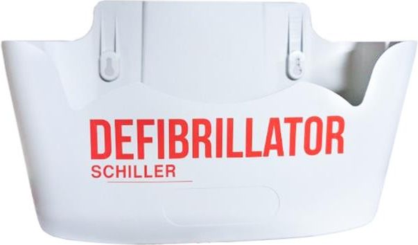 SCHILLER Uchwyt ścienny do defibrylatora AED. Defibrylator poprzez wytłumienie chaotycznych impulsów elektrycznych płynących przez serce stara się przywrócic jego prawidłowego rytm. Finalnie sytuacja w organiźmie wraca do normy kiedy to serce zaczyna prawidłowo pracować jako główna pompa w ciele …