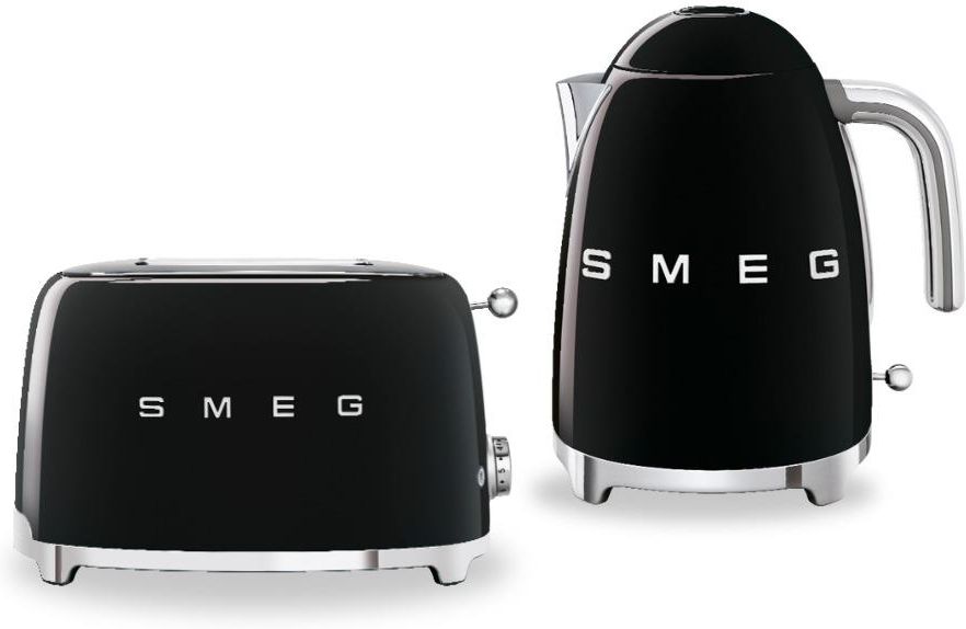 Smeg zestaw kuchenny Czajnik SMEG KLF03BLEU + Toster SMEG TSF01BLEU Poznaj starannie skomponowany zestaw produktów marki Smeg, który łączy wyjątkowy design, wysoką jakość wykonania i funkcjonalność. To doskonałe rozwiązanie dla miłośników stylowych i praktycznych urządzeń do kuchni, które tworzą spójną i estetyczną całość. Smeg zestaw śniadaniowy Ten zestaw jest idealny dla śniadania: czajnik i toster Smeg to połączenie stylu i funkcjonalności, które sprawi, że każdy poranek będzie przyjemnością. Zestaw Smeg czarny Warto wybrać ten zestaw, ponieważ łączy w sobie elegancję i nowoczesność, a jego wyjątkowy design doda charakteru każdej kuchni. Czarny Czajnik Smeg KLF03BLEU Czajnik SMEG KLF03BLEU łączy włoski design retro z nowoczesnymi rozwiązaniami technicznymi. Stalowa, lakierowana obudowa w głębokim czarnym kolorze i chromowane detale tworzą wyjątkowy wygląd, który przyciąga uwagę. Dzięki mocy 2400 W urządzenie błyskawicznie zagotowuje wodę, a pojemność 1,7 litra pozwala na przygotowanie aż 7 filiżanek napoju. Wbudowany filtr antywapienny zapewnia czystość wody, a system Soft Opening umożliwia bezpieczne otwieranie pokrywy. Czajnik SMEG to nie tylko praktyczne urządzenie, ale i stylowy akcent w każdej kuchni. Materiał: aluminium, stal nierdzewna Kolor: czarny Wysokość: 24,8 cm Długość: 22,6 cm Szerokość: 17,1 cm Pojemność: 1,7 l Waga: 1,6 kg Napięcie: 220‐240 V Częstotliwość: 50/60 Hz Wtyczka: Schuko Moc: 2400 W Czarny Toster Smeg TSF01BLEU Kompaktowy toster SMEG TSF01BLEU w stylu 50’s Style to stylowe i praktyczne urządzenie do codziennego użytku. Wyposażony w 6 poziomów opiekania i 3 funkcje dodatkowe (rozmrażanie, podgrzewanie, bajgiel), umożliwia idealne przygotowanie pieczywa w każdej postaci. Dwie szerokie komory z funkcją automatycznego centrowania gwarantują równomierne opiekanie kromek o różnej grubości. Mechanizm automatycznego wysuwania pieczywa po zakończeniu cyklu oraz tacka na okruchy zapewniają maksymalną wygodę i łatwe czyszczenie. Toster SMEG w czarnym, lakierowanym wykończeniu będzie wyjątkową ozdobą każdej kuchni. Materiał: aluminium, stal nierdzewna Długość przewodu: 1 m Wysokość: 19,8 cm Głębokość: 19,5 cm Szerokość: 31 cm Waga: 2,45 kg Napięcie: 220‐240 V Częstotliwość: 50 Hz Wtyczka: Schuko Moc: 950 W