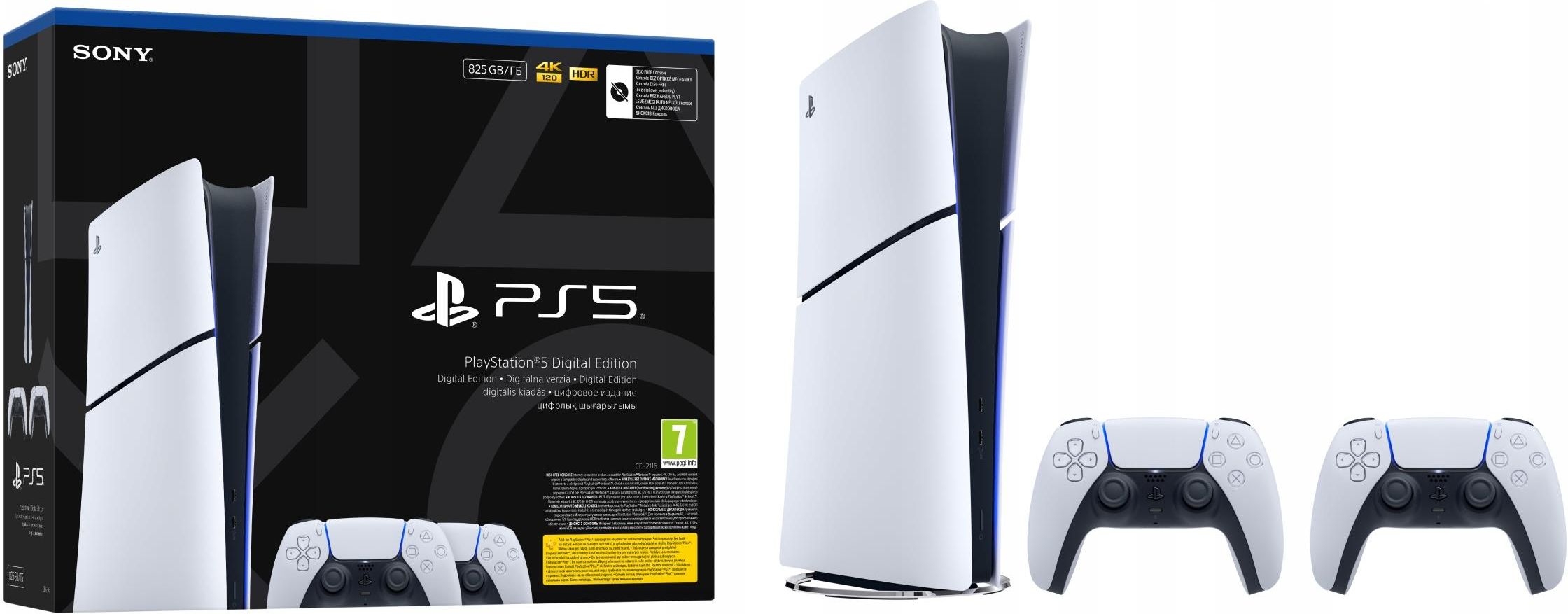 Konsola Sony PlayStation 5 Digital + 2 kontrolery DualSense Cyfrowa rozrywka nowej generacji w smukłej formie Zestaw z konsolą PlayStation®5 Digital Edition to wejście do świata gamingu bez ograniczeń fizycznych nośników. Ta wersja konsoli, zamknięta w eleganckiej, kompaktowej obudowie (Slim …