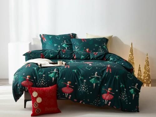 Spod Igły I Nitki Pościel Mikrosatynowa 160X200 Baletnice Świąteczne Zieleń Tuszyn