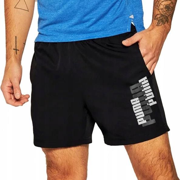 Puma GRAFICO CRO BANADOR CORTO PLAYA MICRO spodenki, sportowe Producent: Puma Model: GRAFICO Rozmiar: M Kolor: czarne Materiał: poliester Cena katalogowa: 149,00 Cechy Wygodny krój, proste nogawki W pasie guma oraz sznurki do ściągania Od wewnątrz podszewka z siateczki Na lewym udzie logo Puma Dwie …