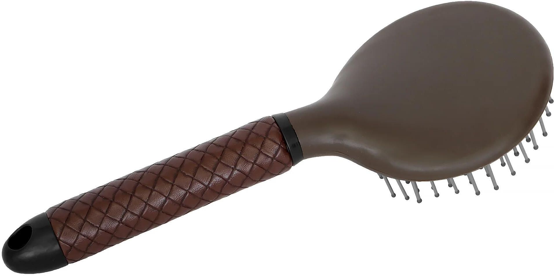 Szczotka dla konia do grzywy i ogona START Braided brązowa Szczotka do grzywy START Braided to wysokiej jakości narzędzie przeznaczone do pielęgnacji grzywy i ogona konia. Wykonana z trwałego plastiku i wyposażona w elastyczne, zaokrąglone zakończenia na sztywnych włoskach, szczotka jest idealna do delikatnego, ale efektywnego rozczesywania, minimalizując ryzyko uszkodzenia włosów. Ergonomiczna rękojeść, ozdobiona plecionym wzorem, zapewnia komfort i pewny chwyt podczas użytkowania, co ułatwia dokładne i staranne rozczesywanie. Kolorystyka dodaje elegancji, a praktyczne rozmiary pozwalają na łatwe i wygodne przechowywanie. Szczotka do grzywy START Braided to niezbędne narzędzie dla każdego właściciela konia, który dba o piękny wygląd i zdrowie grzywy i ogona swojego zwierzęcia.