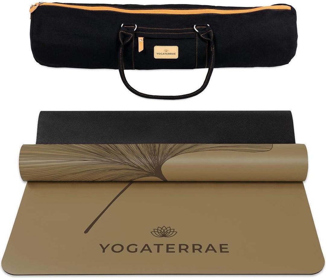 Yogaterrae Mata Do Jogi Z Pu I Gumy, Dark Ginkgos Yin Yang + Torba 183Cm Brązowe Tuszyn