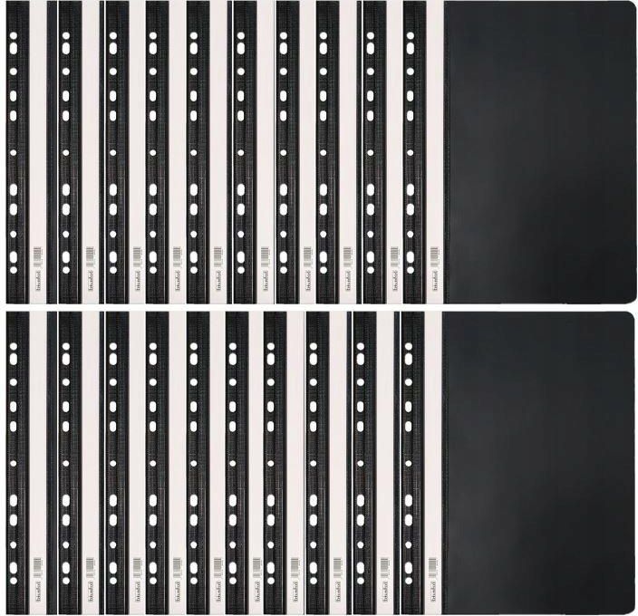 Skoroszyt BIURFOL zawieszkowy a4 Skoroszyt BIURFOL zawieszkowy A4 PCV twardy w kolorze czarnym to praktyczne i trwałe rozwiązanie do porządkowania dokumentów w formacie A4. Posiada szereg cech, które sprawiają, że jest wygodny i funkcjonalny. Cechy produktu: Materiał: Wykonany z trwałej folii PVC, co gwarantuje ochronę dokumentów przed uszkodzeniami. Konstrukcja: Przód skoroszytu jest twardy i przezroczysty, umożliwiając łatwe rozpoznawanie zawartości. Tył jest również twardy, ale w kolorze czarnym. Boczna perforacja: Pozwala na łatwe wpięcie skoroszytu do segregatora z dowolnym ringiem, co ułatwia organizację dokumentów. Wnętrze: Wyposażony w blaszkę i wąs o długości 16,5 cm, co umożliwia wpięcie dokumentów o grubości do 2 cm. Pasek do opisu: Dołączony wymienny papierowy pasek do opisu z kodem kreskowym na każdym skoroszycie ułatwia identyfikację zawartości. Wycięcia ułatwiające wysuwanie: Dwa wycięcia na skoroszycie ułatwiają szybkie i wygodne wysuwanie paska z informacjami. Rogi zaokrąglone: Zaokrąglone rogi obu okładek zapewniają estetyczny wygląd i chronią przed uszkodzeniami. Opakowanie: Zestaw zawiera 20 sztuk skoroszytów. Skoroszyt BIURFOL zawieszkowy A4 PCV twardy to praktyczne narzędzie do skutecznego porządkowania dokumentów w biurze, szkole czy domu, charakteryzujące się eleganckim wyglądem w kolorze czarnym.