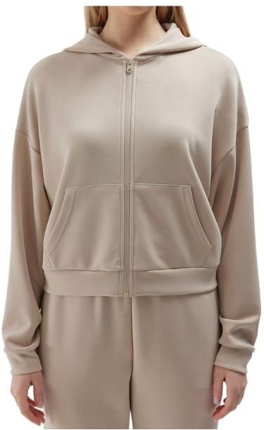Bluza dresowa damska 4F krótsza rozpinana z dodatkiem modalu Spokojna modalowa kolekcja MODAL STORY to propozycja stworzona z myślą o codziennym komforcie. Wyróżnia ją lekkość form, stonowana kolorystyka oraz ponadczasowy charakter – idealny na lato. Kolekcja łączy wygodę z estetyką homewearu, dając możliwość swobodnego komponowania stylizacji. W palecie barw znajdziesz klasyczną czerń, ciepły brąz, beż, słoneczny żółty oraz delikatny niebieski. Jednym z kluczowych elementów kolekcji jest rozpinana bluza dresowa damska z kapturem, która doskonale sprawdzi się w codziennych, casualowych i sportowych zestawieniach. Wykonana z przyjemnego w dotyku materiału – 40% modalu i 54% poliestru – łączy naturalną miękkość i przewiewność z trwałością oraz odpornością na zmechacenie. Regularny krój zapewnia wygodne dopasowanie do sylwetki, a dzianina typu single jersey o gramaturze 230 g/m² sprawia, że bluza jest elastyczna, lekka i komfortowa w noszeniu. Bluza nie posiada podszycia, co czyni ją idealnym wyborem na cieplejsze dni – zapewnia swobodę ruchu i uczucie świeżości nawet przy wyższych temperaturach. Szczegóły: Gramatura: 230 gsm. Wnętrze bez podszycia. Krój regular. Standardowy fason o długości do bioder Wykonana w 40% z modalu. Zawartość poliestru (54%). Miękka w dotyku dzianina single jersey o gładkiej powierzchni. Dekolt ze zintegrowanym kapturem. Mankiety ze ściągaczem. Dwie otwarte kieszenie boczne. Zapinana na jednokierunkowy zamek. Obniżona linia ramion. Dół ze ściągaczem. Materiał główny: Poliester 54%, Modal 40%, Elastan 6% Podszewka: Modal 65%, Poliester 35% TSWSF1002-83S