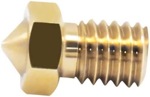 Wysokiej jakości dysza o średnicy otworu 0,4mm. Wykonana z mosiądzu, co sprawia, że jest odporna na wysokie temperatury. Dobrej jakości materiał, który w połączeniu z dużą dokładnością wymiarową produktu oraz gładką głowicą dyszy, dają gwarancję równomiernie rozprowadzonego roztopionego filamentu. Dysza to element końcowy hotendu, odpowiedzialny za rozprowadzenie filamentu na powierzchni stołu. Produkt ma standardowy gwint M6, który pozwala na stabilne mocowanie w hotendzie. Specyfikacja dyszy: ✔️Materiał wykonania: mosiądz ✔️Gwint: M6 ✔️Średnica otworu dyszy: 0,4 mm