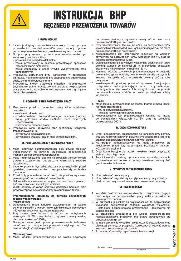 Iae09 Instrukcja Bhp Ręcznego Przewożenia Towarów, Pn - Płyta Pcv 1Mm (245X350Mm) Twardogóra