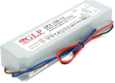 Zasilacz hermetyczny IP67 do oświetlenia LED, marki GLP o mocy 100 Watt na napięcie DC 24 Volt. Zasilacz LED GPV-150-24 to wysokiej jakości urządzenie w szczelnej obudowie hermetycznej klasy IP67, która zapewnia odporność na zachlapania wodą, wilgoć oraz kurz i pył. Zasilacz o mocy 100W i napięciu 24V, również posiada wodoodporną obudowę, co sprawia, że jest idealny do miejsc o podwyższonej wilgotności oraz do instalacji zewnętrznych. Dzięki swojej pyłoszczelnej konstrukcji, zasilacz ten doskonale sprawdzi się w środowiskach o dużym zapyleniu lub zakurzeniu. Obudowa klasy IP67 chroni urządzenie przed kurzem i wilgocią, podczas gdy zasilacz zapewnia cichą pracę. Dzięki szczelnej obudowie IP65, zasilacz współpracujący ze ściemniaczami LED PWM nie wydaje żadnych dźwięków podczas ściemniania, co eliminuje drgania cewek i kondensatorów. Podstawowe zalety zasilacza: zamknięta hermetyczna obudowa zasilacza, szczelna wodoodporna obudowa zasilacza IP67, obudowa zasilacza odporna na zachlapania wodą, obudowa zasilacza odporna na kurz i pył, obudowa zasilacza odporna na wilgoć, profesjonalny zasilacz ledowy o wydłużonym okresie gwarancji, zasilacz z przewodami do podłączenia ledów 24V, zasilacz z przewodami do podłączenia do prądu AC 230V. Podstawowe zastosowanie zasilacza: zasilacz do ledów w łazience, zasilacze do oświetlenia led w pergoli, altanie na zewnątrz, zasilacz do oświetlenia ledowego w podbitce i elewacji, zasilacz do miejsc i pomieszczeń o dużej wilgotności, zasilacz do miejsc o dużym zapyleniu. Podstawowe parametry zasilacza: napięcie znamionowe na wyjściu: DC24V, moc znamionowa: 100 Watt, znamionowe obciążenie prądowe: 4.15A, sprawność zasilacza: ⩾88%, maksymalne bezpieczne obciążenie dla zasilacza: 90 Watt, napięcie zasilania na wejściu: AC 90V-264V, częstotliwość napięcia zasilania: 47Hz-63Hz, zabezpieczenie przeciążeniowe: tak, zabezpieczenie zwarciowe: tak, zabezpieczenie przepięciowe: tak, klasa ochronności: II, klasa szczelności: IP65, chłodzenie zasilacza: pasywne, obudowa zasilacza: hermetyczna plastikowa ABS, długość przewodów przyłączeniowych: 180mm wymiary zewnętrzne zasilacza (dł. x szer. x wys.): 190mm x 52mm x 37mm
