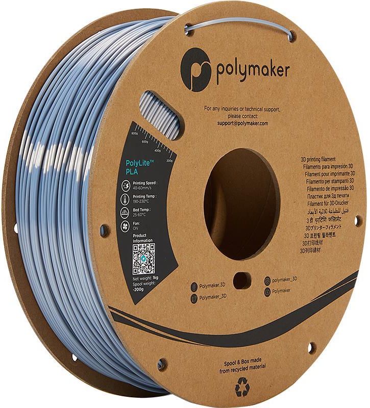 Filament PLA Polymaker 1,75 mm 1000g - srebrny Filament PLA od firmy Polymaker z rodziny Polylite to materiał wykonany z materiałów biodegradowalnych, oferujący najwyższą jakość wydruków przy mało wymagającym materiale. Do produkcji został wykorzystany biodegradowalny poliaktyd. Dane techniczne Kolor: srebrny Waga: 1 kg Temperatura dyszy: 190 - 230C Temperatura stolika: 25 - 60°C Prędkość druku: 40 - 60 mm/s Tolerancja: +/-0.05 mm Gęstość: 1.25 g/cm3