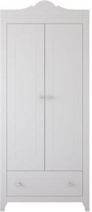 Szafa 2 drzwiowa SANTI Elegancja, funkcjonalność i ponadczasowy styl – wszystko w jednym meblu! Szafa w kolorze klasycznej bieli to wyjątkowy element wyposażenia dziecięcego pokoju, który zachwyca nie tylko praktycznością, ale także wyjątkowym wyglądem. Jej designerski charakter podkreślają subtelne frezy na frontach oraz stylowe kryształowe uchwyty, które dodają jej szyku i lekkości. To mebel, który doskonale łączy nowoczesną formę z klasyczną elegancją – idealny zarówno do pokoju niemowlęcia, jak i starszego dziecka. Najważniejsze zalety szafy: Ponadczasowa biel – uniwersalna i łatwa do dopasowania do każdej aranżacji. Dekoracyjne frezowania i kryształowe gałki – estetyczne detale, które przyciągają wzrok. Funkcjonalne wnętrze: Po prawej stronie: miejsce na 3 półki – jedna z nich zamontowana na stałe, a dwie pozostałe z możliwością regulacji na trzech poziomach, co pozwala dostosować przestrzeń do indywidualnych potrzeb. Po lewej stronie: dwa drążki na ubrania – jeden w górnej, drugi w dolnej części – idealne do przechowywania odzieży w różnym rozmiarze. Pojemna szuflada – umieszczona na prowadnicach kulkowych z pełnym wysuwem, zapewnia komfort codziennego użytkowania. Wyposażona w zabezpieczenie przed wypadaniem, co zwiększa bezpieczeństwo dziecka. Materiały i wykonanie: Szafa została wykonana z wysokiej jakości płyty meblowej (I gatunku). Fronty i barierki mają grubość 18 mm, co przekłada się na trwałość i solidność konstrukcji. Warto mieć na uwadze, że poszczególne elementy mogą delikatnie różnić się odcieniem bieli – jest to naturalna cecha materiałów meblarskich. JAKOŚĆ WYKONANIA = PRZYJEMNOŚĆ UŻYTKOWANIA WYMIARY UWAGA ! Prezentowane wybarwienia mają wyłącznie charakter poglądowy. Mogą wystąpić minimalne różnice wynikające z rodzaju użytego materiału czy też różnych ustawień monitora. Łóżko dostarczane jest w paczkach, do samodzielnego montażu. Meble dostarczane są za pośrednictwem firmy kurierskiej, kierowca nie wnosi mebli do domu. W razie jakichkolwiek pytań zapraszamy do kontaktu