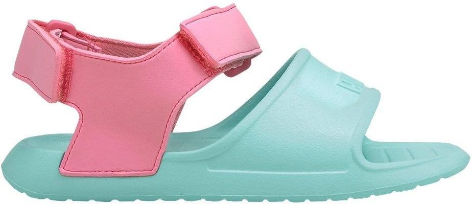 Rozmiar [iai:product_size] Sandały dla dziecka Puma sprawdzą się podczas codziennego użytkowania. Lekka konstrukcja z pianki nie obciąża nadmiernie stóp. Syntetyczne paski z dwustrefowym zapięciem ułatwiają ubieranie. Fakturowana podeszwa cechuje się dobrą przyczepnością do podłoża. Model w kolorze niebiesko-różowym. sandały dziecięce PUMA wygodne dwa regulowane paski na rzep miękka wyściółka amortyzowana podeszwa Tabela rozmiarowa EUR 28 - 17 cm EUR 29 - 17,5 cm EUR 31 - 18,5 cm EUR 32 - 19 cm EUR 33 - 20 cm EUR 34,5 - 21 cm