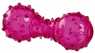 TRIXIE HANTEL Z GUMY TERMOPLASTYCZNEJ 12cm TX-34930 Zabawka dla psa hantel - smakula na przysmaki odpowiednia dla psów w każdym wieku Zabawka dla pieska wspomagająca aktywność Zabawka idealna dla psów bardzo aktywnych Zapewnia godziny świetnej zabawy Łatwa w utrzymaniu w czystości Zapewnia długą zabawę Podczas zabawy porcje smakołyków wypadają na zewnątrz nagradzając pupila za cierpliwość Zabawkę napełnia się smakołykami które wypadają podczas zabawy Zabawka z wysokiej jakości gumy termoplastycznej z wypustkami Wypustki dodatkowo masują dziąsła Hantel wytrzymały i trwały Łatwy do chwycenia w pyszczek Zabawka odpowiednia zarówno do zabawy jak i do tresury Kolor zabawki (wysyłany losowo): różowy czerwony fioletowy pomarańczowy Wymiary: Długość: 12cm