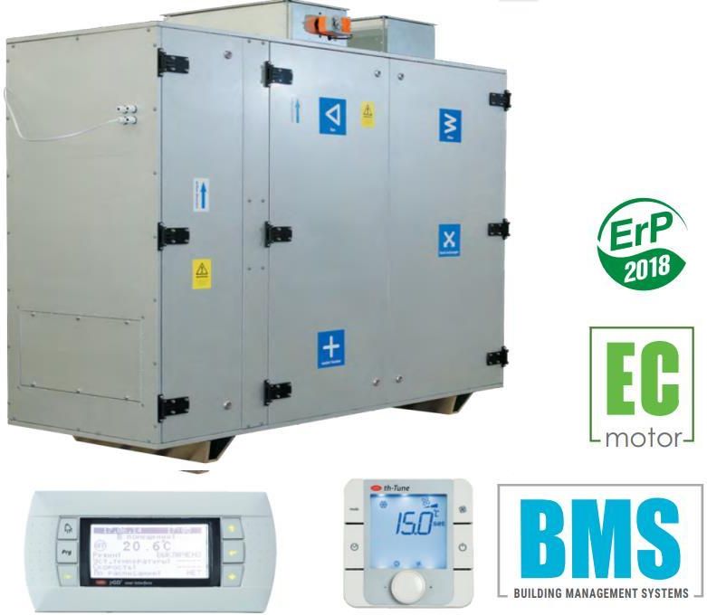 Pobierz atest higieniczny. Pobierz deklaracje zgodności. Pobierz dokumentacje techniczno-ruchową. Pobierz kartę produktu. Zastosowanie: Centrala wentylacyjna z odzyskiem ciepła to nowoczesne urządzenie wentylacyjne zapewniające mechaniczną wymianę powietrza w pomieszczeniach z jednoczesnym jego filtrowaniem. Konstrukcja wymiennika płytowego umożliwia pozyskanie energii cieplnej z powietrza wywiewnego do ogrzania powietrza nawiewanego z zewnątrz. Centrale są przeznaczone do energooszczędnej wentylacji obiektów oraz montażu z przewodami wentylacyjnym o przekroju 600x300 oraz 1000x400 mm. Warianty: CFV modele bez wbudowanej nagrzewnicy. CFV HE modele są wyposażone w nagrzewnicę elektryczną wtórną. CFV HW modele są wyposażone w nagrzewnicę wodną wtórną. Obudowa: Obudowa jest wykonana ze stali alucynkowej z wewnętrzną izolacją termiczną oraz akustyczną z wełny mineralnej o grubości 40 mm. Filtry: Centrala wyposażona jest w dwa filtry panelowe o klasie filtracji F7 do oczyszczania powietrza nawiewanego i wywiewanego. Wentylatory: W centralach zastosowano wentylatory z silnikami komutowanymi elektronicznie typu EC, z zewnętrznym wirnikiem i łopatkami zagiętymi do tyłu. Tego typu silniki są obecnie najbardziej innowacyjnym rozwiązaniem w dziedzinie oszczędzania energii elektrycznej. Zintegrowany system elektroniki w silnikach EC umożliwia płynną regulację w pełnym zakresie prędkości obrotowej wentylatora przy zachowaniu wysokiej sprawności. Silniki komutowane elektronicznie osiągają sprawność do 90%. Zastosowanie silników EC pozwoliło zmniejszyć zużycie energii elektrycznej od 1,5 do 3 razy, przy zachowaniu wysokiej sprawności oraz niskiego poziomu hałasu. Wymiennik ciepła: Centrale CFV są wyposażone w przeciwprądowy wymiennik ciepła z aluminium. W okresie zimowym ciepło z powietrza wywiewanego jest przekazywane do ogrzania powietrza nawiewanego. Proces rekuperacji ogranicza straty cieplne poprzez wentylację, umożliwiając wymianę powietrza w kontrolowany sposób. Centrala jest wyposażona w tacę ociekową, umożliwiającą gromadzenie i odprowadzenie skroplin. Nagrzewnica: Centrale CFV HE są wyposażone w nagrzewnicę elektryczną do dodatkowego podgrzewania nawiewanego powietrza za rekuperatorem. Centrale CFV HW są wyposażone w nagrzewnicę wodną do dodatkowego podgrzewania nawiewanego powietrza za rekuperatorem. Centrale CFV nie mają wbudowanej nagrzewnicy elektrycznej. By-pass: Centrala jest wyposażona w by-pass, który jest automatycznie otwierany w okresie letnim, gdy jest konieczność ochłodzenia pomieszczenia chłodnym powietrzem z zewnątrz. W centralach wyposażonych w nagrzewnice by-pass może być wykorzystywany zimą do ochrony rekuperatora przed obmarzaniem. Sterowanie: Centrale CFV są wyposażone we wbudowany układ automatyki. Automatyka A31 daje możliwość podpięcia paneli sterujących A32 lub A30. Jest on elementem niezbędnym do uruchomienia i pracy centrali. Ochrona przed zamarzaniem: W centralach CFV ochrona przed obmarzaniem odbywa się przy pomocy by-passu. Sterownik rozpoczyna proces ochrony wymiennika przeciwprądowego, kiedy temperatura zewnętrzna spadnie poniżej -5°C, stosując pomiar czasu. Czas otwarcia by-passu, zmienia się zależnie od zmiany temperatury zewnętrznej. Montaż: Centrala jest przeznaczona do montażu podłogowego, wewnętrznego. Konserwacja urządzenia oraz filtrów jest możliwa od strony panelu serwisowego. Centrala występuje w wersji prawej lub lewej.
