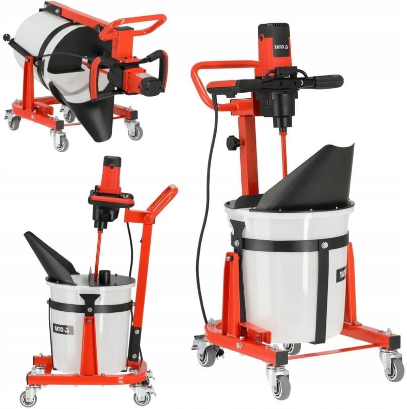 STACJA MIESZAJĄCA 50L 1600W DO WYLEWEK PODŁOGOWYCH YATO YT-82605 Przenośna, zasilana sieciowo stacja do mieszania zapraw samopoziomujących, mas szpachlowych i epoksydów. Zapewnia równomierne, wydajne mieszanie oraz precyzyjne i kontrolowane wylewanie gotowych mas dzięki konstrukcji z łatwym przechylaniem kubła. Umożliwiając dozowanie określonej ilości masy, doskonale sprawdza się do miejscowego uzupełniania zapraw w celu uzyskania idealnie równego poziomu podłoża. Osłona przeciwpyłowa, po podłączeniu odkurzacza, zabezpiecza przed rozpryskiwaniem mieszanek w trakcie pracy i redukuje ilość pyłu unoszącego się na zewnątrz zbiornika. wydajny mieszacz o mocy 1600 W elektroniczna regulacja obrotów: 150-300 obr./min (bieg I), 300-650 obr./min (bieg II) funkcja "miękki start" zabezpieczenie przed przegrzaniem kubeł o pojemności 50 l z dużym otworem dokładne mieszanie - bez grudek, suchych pozostałości i z odpowiednim napowietrzeniem 4 koła skrętne ułatwiają transport, a 2 hamulce zapewniają stabilność wygodne uchwyty do transportu i przechylania kubła mocowanie na gwint M14 waga: 26,3 kg Parametry Moc: 1600 W Obroty: 150-300 / 300-650 min⁻¹ Napięcie: 230-240 V a.c. Częstotliwość: 50 Hz Rozmiar gwintu: M14 Elektronicznie regulowana prędkość obrotowa: tak Miękki start: tak Przełącznik kierunku obrotów: nie Przełącznik rodzaju pracy: nie Zabezpieczenie przed przegrzaniem: tak Maks. objętość masy: 50 l Maks. obciążenie zbiornika: 35 kg Klasa izolacji elektrycznej: II Stopień ochrony: IPX0 Ciśnienie akustyczne: 85.6 ± 3.0 dB(A) Moc akustyczna: 93.6 ± 3.0 dB(A) Drgania: 2.283 ± 1.5 m/s² Masa: 26.3 kg
