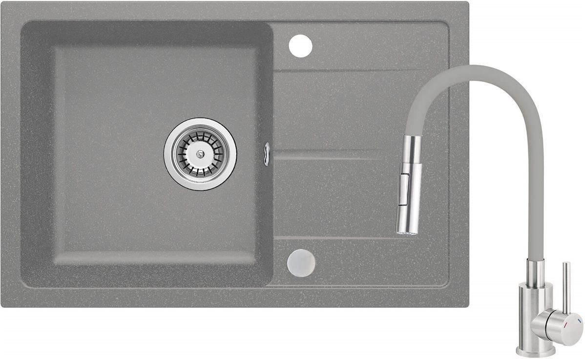 Zlewozmywak granitowy z baterią z giętą wylewką (ZRDGS113) - Deante Twardogóra