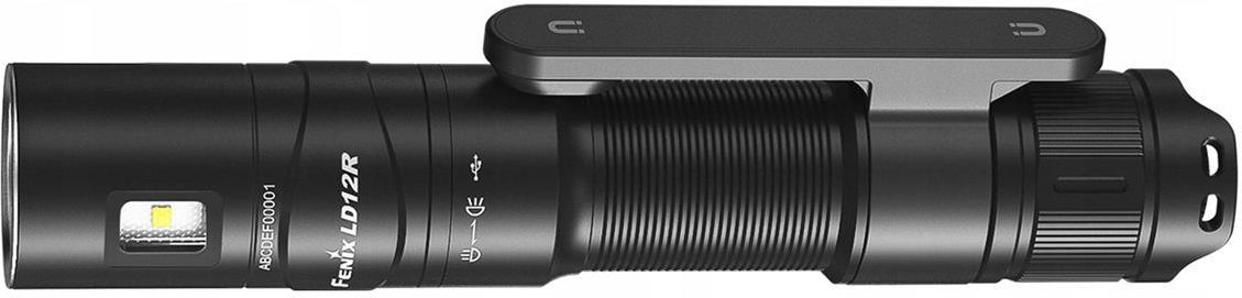 Kieszonkowa latarka Fenix LD12R oferuje do 600 lumenów strumienia świetlnego i zasięg 186 metrów w głównym reflektorze. Zasilana jest akumulatorem 14500 Li-ion 800 mAh, który ładuje się bezpośrednio w latarce poprzez złącze USB-C ukryte pod wkręcaną głowicą latarki. Dzięki temu złącze ładowania jest doskonale chronione przed wodą i brudem. Alternatywnie, do zasilania można również użyć pojedynczej jednorazowej baterii alkalicznej AA lub NiMH (ograniczona do maksymalnej mocy 150 lumenów). Główny reflektor jest uzupełniony przez dodatkowe światło boczne o mocy do 100 lumenów i szerokim stożku światła do oświetlania krótkich odległości (np. do czytania, pracy itp.). Latarka jest również wyposażona w stały klips z wbudowanym magnesem, dzięki czemu można ją łatwo zaczepić do kieszeni lub paska, lub przymocować do żelaznej powierzchni i mieć wolne ręce podczas świecenia. W trybie oszczędzania energii z mocą 1 lumena oferuje również bardzo długą żywotność do 110 godzin świecenia na jednym ładowaniu. Fenix LD12R to wszechstronna latarka ręczna odpowiednia do codziennego noszenia, w domu, w domku letniskowym lub podczas wędrówek. Dzięki magnetycznemu klipsowi i bocznemu światłu doskonale sprawdza się również jako latarka robocza. Wszystkie parametry latarki (strumień świetlny, żywotność baterii, wodoodporność, zasięg i odporność na wstrząsy) są mierzone zgodnie z normą ANSI/NEMA FL 1-2009. Parametry latarki ładowalnej Fenix LD12R Zastosowano wydajną diodę Luminus SST-20 LED oraz uzupełniającą diodę SC1818C LED, obie o żywotności 50 000 godzin. Cztery główne tryby mocy reflektora: 600 lumenów (1,3 godziny) -> 150 lumenów (3,3 godziny) -> 30 lumenów (16,3 godziny) -> 1 lumen (110 godzin). Trzy tryby mocy światła bocznego: 100 lumenów (4 godziny) -> 30 lumenów (14,5 godziny) -> 5 lumenów (53 godziny). Gładki aluminiowy odbłyśnik dla stożka światła o zasięgu do 186 metrów (8616 cd). Wykorzystuje do zasilania akumulator litowo-jonowy typu 14500 o pojemności 800 mAh, który znajduje się w zestawie. Może również wykorzystywać do działania zwykłe baterie alkaliczne lub NiMH AA, ale maksymalna moc wyjściowa jest z nimi ograniczona do 150 lumenów. Zabezpieczenie przed przypadkowym włożeniem baterii odwrotnie (odwrotna polaryzacja). Wykonana z utwardzanego aluminium lotniczego typu T6. Niewrażliwa na upadki z minimalnej wysokości 1 metra. Lampa posiada pamięć ostatnio ustawionego trybu zasilania głównego reflektora. Powierzchnia dolna - twarda anodyzacja typu III. Odporna na uszkodzenia i wodoodporna zgodnie ze standardem IP68 (testowana pod wodą na głębokości 2 metrów). Soczewka z hartowanego szkła z powłoką antyrefleksyjną. Zacisk ze zintegrowanym magnesem - lampę można przymocować do dowolnego przedmiotu żelaznego. Gwint pręta oświetleniowego o zwiększonej odporności na zużycie. Wymiary 12,1 cm (długość) x 1,9 cm (średnica korpusu) x 2,2 cm (łącznie z zapięciem). Waga 74 gramy (łącznie z baterią). Latarka dostarczana jest ze smyczą na nadgarstek, baterią litowo-jonową ARB-L14-800, zapasowym o-ringiem i kablem USB do ładowania. Opcjonalnie można dokupić oryginalne akcesoria: dyfuzor AOD-S, etui AB02, uchwyt na latarkę rowerową LockBlocks, uchwyt na kask rowerowy BikeBlock. Użytkowanie latarki Fenix LD12R LED Przed pierwszym użyciem zdejmij zaślepkę izolacyjną z akumulatora. Aby włączyć lub wyłączyć latarkę, naciśnij do końca przycisk końcowy latarki. Aby przełączać między głównym i bocznymi reflektorami przy włączonym świetle, poluzuj głowicę latarki, aż się wyłączy (około ćwierć obrotu), a następnie dokręć ją ponownie. Spowoduje to przełączenie między głównym i bocznymi reflektorami. Tryby zasilania można zmieniać przy włączonej lampie, naciskając przycisk w zaślepce. Lampa posiada pamięć trybów zasilania głównego reflektora.Jeśli wyłączysz ją przyciskiem i włączysz ponownie w czasie dłuższym niż 1 sekunda, włączy się w ostatnio ustawionym trybie. Ładowanie - Poluzuj głowicę latarki o 3 do 4 obrotów, aby odsłonić port ładowania i podłącz kabel USB-C do portu ładowania latarki. Po zakończeniu ładowania ponownie dokręć głowicę. Normalny czas ładowania wynosi około 2 godzin przy całkowicie rozładowanej latarce. Latarka nie może być używana podczas ładowania. Podczas ładowania wskaźnik obok złącza ładowania świeci się na czerwono, a po zakończeniu ładowania świeci się na zielono. Jeśli używasz jednorazowego akumulatora alkalicznego lub NiMH, nie próbuj ładować go w lampie! Wskaźnik naładowania akumulatora - obok złącza ładowania znajduje się wskaźnik LED wskazujący poziom naładowania akumulatora (konieczne jest odkręcenie głowicy lampy o 3-4 obroty). Po naciśnięciu przycisku wskaźnik zaświeci się na 3 sekundy. Dopóki wskaźnik LED świeci na zielono, akumulator jest naładowany w ponad 85%. Miganie na zielono oznacza pojemność 50-85%. Jeśli świeci na czerwono, oznacza to, że bateria jest naładowana w 25-50%. Miganie na czerwono oznacza, że pozostało mniej niż 25% pojemności baterii. Ta funkcja jest aktywna tylko w przypadku korzystania z akumulatorów litowo-jonowych 14500. Inteligentna ochrona przed przegrzaniem - duża ilość ciepła gromadzi się, gdy latarka jest używana w trybie najwyższej mocy przez dłuższy czas. W takim przypadku oprawa automatycznie zmniejszy moc, aby obniżyć temperaturę. Ostrzeżenie o niskim poziomie baterii - Jeśli napięcie baterii spadnie poniżej ustawionego poziomu, oprawa zmniejszy jasność do niższego poziomu, aż spadnie do najniższego trybu. Po osiągnięciu najniższego poziomu mocy będzie migać trzy razy co 5 minut, aby przypomnieć o konieczności naładowania lub wymiany baterii. Ta funkcja jest aktywna tylko w przypadku korzystania z akumulatora litowo-jonoweg