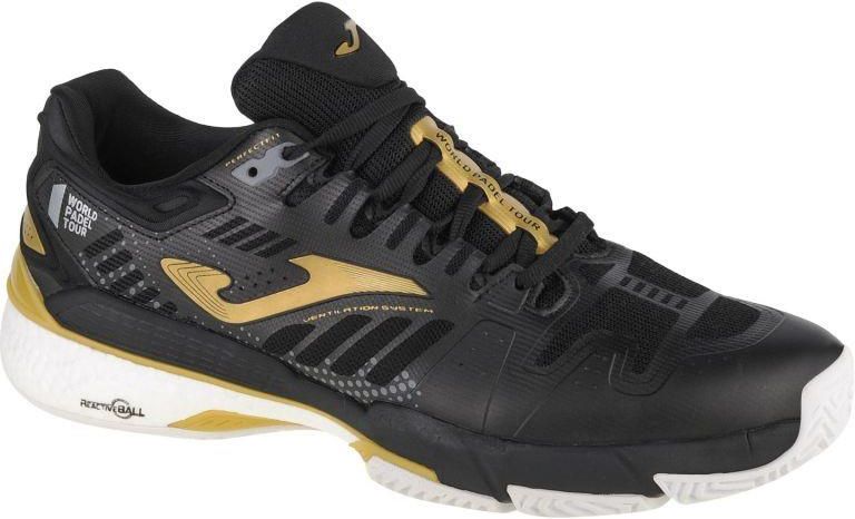 Joma T.Slam Men 2201 Męskie Buty Do Tenisa 40,5 Specyfikacja produktu: Producent - Joma Płeć - Męskie Kolor dominujący - Czarny Kolor Producenta - Black/Gold Materiał - Syntetyk Materiał wkładki - Inny Materiał Podeszwa wewnętrzna - Eva Podeszwa zewnętrzna - Guma Amortyzacja - Full Dual Pulsor …